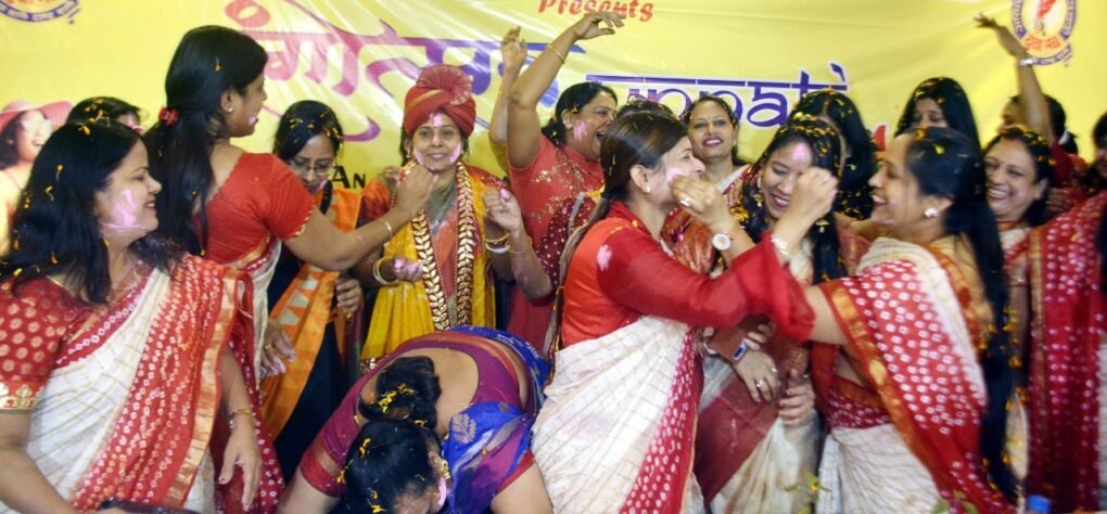 जमशेदपुर। साकची अग्रसेन भवन में मारवाड़ी युवा मंच स्टील सिटी सुरभि शाखा द्धारा चल रहे दो दिवसीय रंगोत्सव उन्नति मेला का रविवार रात को समापन हुआ। समापन समारेाह में मौजूद समाज के गणमान्य लोगों समेत सुरभि शाखा की सदस्यों ने फूलो की होली खेली ओर एक-दूसरे को बधाई दी। साथ ही ठंडाई, डफ और मारवाड़ी गीत ने पूरा माहौल को होलीमय बना दिया था।