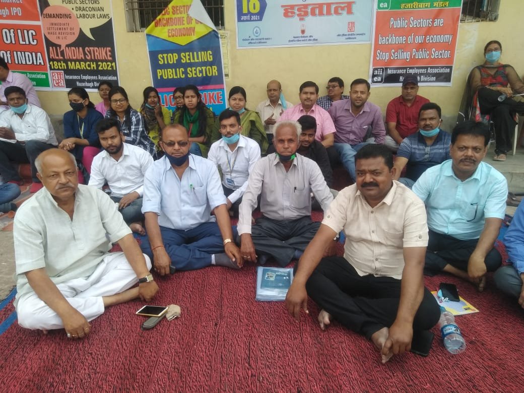 भारतीय जीवन बीमा निगम के कर्मचारियों व अधिकारियों ने भारतीय जीवन बीमा निगम को शेयर बाजार में सूचीबद्ध करने के निर्णय को तत्काल प्रभाव से रद्द करने, LIC की IPO का विरोध ,बीमा उद्योग में विदेशी निवेश 49 से बढ़ाकर 74 प्रतिशत करने के प्रस्ताव को रद्द करने, सार्वजनिक उपक्रमों के निजीकरण न करके उन्हें और अधिक सुदृढ़ करने तथा 1 अगस्त 2017 से लम्बित वेतन बढ़ोतरी समझौते को शीघ्रातिशीघ्र सम्पन्न करने जैसे मुद्दों पर भारतीय जीवन बीमा निगम में गठित सन्युक्त मंच जिसमें Cl-I अधिकारियों का संगठन (LIC Class I officers Federation), विकास अधिकारियों का संगठन (NFIFWI) तथा Class III एवं IV कर्मचारियों का संगठन (AIIEA) के संयुक्त मोर्चे के राष्ट्रव्यापी आह्वान पर पूरे देश में सभी कर्मचारी दिनांक 18 मार्च 2021 अपनी मांगों को रखते हुए एक दिवसीय हड़्ताल पर रहे तथा कार्यालय बंद रहे ।
