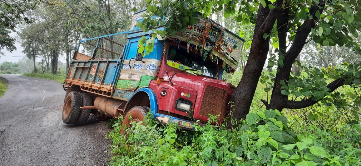 बारिश के बाद नेतरहाट रोड में छाया कुहासा, माईस ट्रक हुई दुर्घटनग्रस्त।