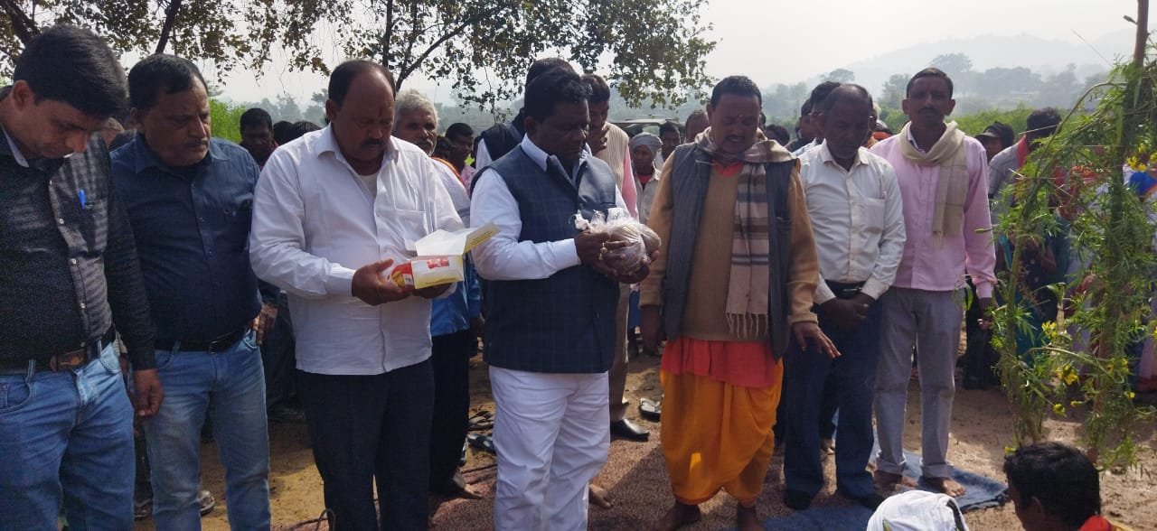 भव निमार्ण मंडप के शिलान्यास में मनिका विधायक रामचन्द्र सिह नारियल फोडकर और पुजन कर शिलन्यास नावाडीह के देवी मंडप के बैगा कुंवर सिंह ने कराया.