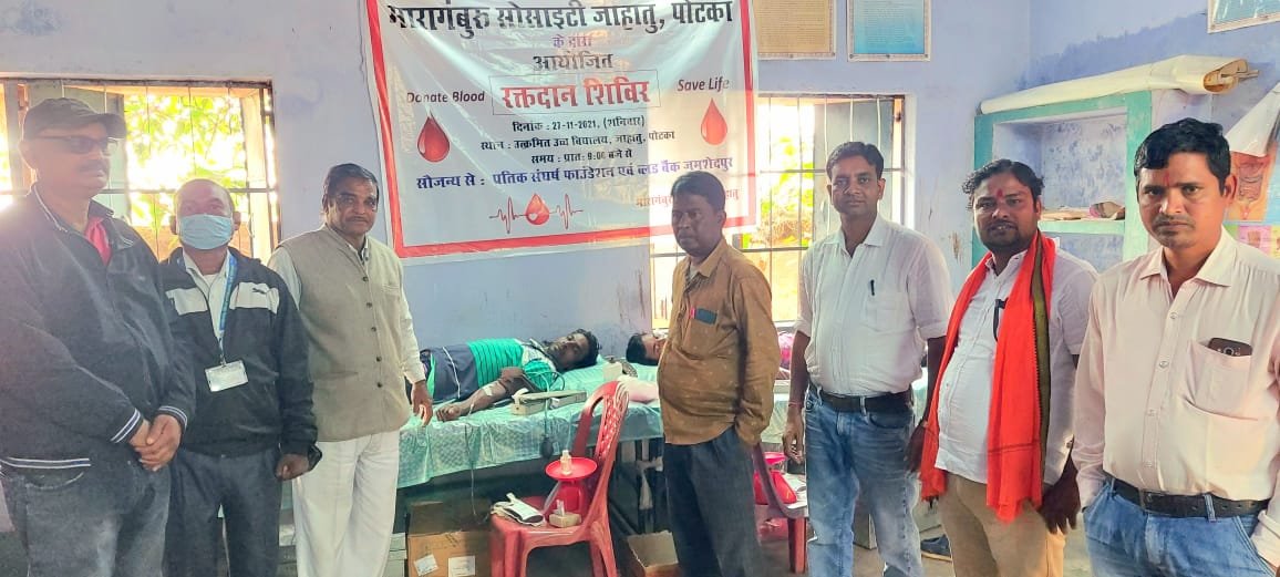 पोटका प्रखंड अंतर्गत हैसल बिल पंचायत के जाहातू उत्क्रमित उच्च विद्यालय परिसर में जमशेदपुर ब्लड बैंक. प्रतीक संघर्ष फाउंडेशन मरांग बुरु सोसाइटी के संयुक्त रुप से 13 बा स्वैच्छिक एक दिवसीय रक्तदान शिविर का आयोजन किया गया जिसमें पोटका के सुदूरवर्ती विभिन्न ग्रामीण क्षेत्र से लोगों ने रक्तदान शिविर पहुंचकर रक्तदान करने का इच्छा दिखाई दी यह मानव सेवा के लिए बहुत अच्छा संकेत है पे तेतला पोड़ा पंचायत के 50 यंग जनरेशन के लोग रक्तदान शिविर में भाग लिया वही सेवा निवृत्त शिक्षक निखिल मंडल जी ने कहा कि यंग जनरेशन के लोगों को बरकरार रख कर मरांग बुरु सोसाइटी द्वारा लगातार रक्तदान शिविर का आयोजन करने को लेकर जाहातू के ग्राम वासियों एवं मरांग बुरु सोसाइटी को धन्यवाद दिया इसलिए कि रक्तदान शिविर का महत्व को एवं भीषण परिस्थिति में रक्त का जरूरत को लेकर सोसायटी द्वारा ग्रामीणों तक पहुंचाया गया इसलिए निखिल चंद्र मंडल द्वारा मरांग बुरु सोसाइटी को बहुत-बहुत धन्यवाद दिया गया 12:00 बजे तक 70 से 80 रक्त दाता रक्त दे चुके हैं 150 प्लस रक्त संग्रह का उम्मीद है जोकि लक्ष्य एक सौ का था इश्क रक्तदान शिविर में जमशेदपुर ब्लड बैंक. प्रतिक संघर्ष फाउंडेशन एवं मरांग बुरु सोसाइटी के ऑर्गेनाइजर सदानंद साहू एडवाइजर जलंधर हेंब्रम निरूप हसदा बलिया सोरेन ग्राम प्रधान रविंद्र नाथ माझी जयराम माझी आदि उपस्थित रहे