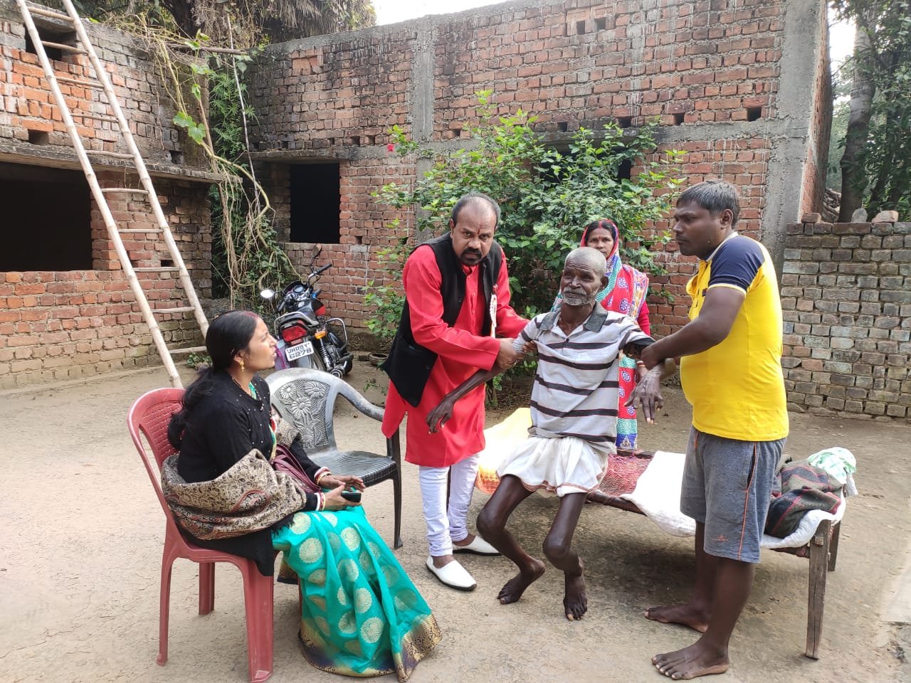 पोटका प्रखंड के चाँदपुर गाँव निवासी भुवनेश्वर सिंह, पिता – स्व.नगेन सिंह बीते 7 वर्षों से अचल अवस्था में विस्तर में पड़ा हुआ है। लगभग सात वर्ष पूर्व सायद हाई बी.पी. के कारण अचानक गिर जाने के बाद इनकी स्थिति ऐसी बिगड़ गई जो बाद में इनके ये हालात हो गया है। पॉव को मुड़ नहीं पाने के कारण चलना फिरना बंद हो गया है – हाथों में भी कोई जोर नहीं, – बड़ी ही अजीबो गरीबी स्थिति में कष्ट के साथ हर दिन हर पल बीता रहा है पीड़ित भुबनेश्वर सिंह। उनके बेटा रविन्द्र नाथ सिंह, उनकी भी मानसिक स्थिति ठीक नहीं है – घर की आर्थिक स्थिति भी अत्यंत दयनीय है। जिप सदस्या श्रीमती मंडल ने आश्वस्थ किये की बाप बेटे दोनों को सदर अस्पताल के कैम्प में ले जाकर दिव्यांग प्रमाण पत्र बनवा कर स्वामी विवेकानन्द निःशक्त स्वावलंबन भत्ता का लाभ दिलवाया जायेगा। जिप सदस्या के साथ पूर्व पार्षद करुणा मय मंडल, पंचायत स्वयंसेवी सीता राम भकत, दीपक भकत आदि उपस्थित थे।