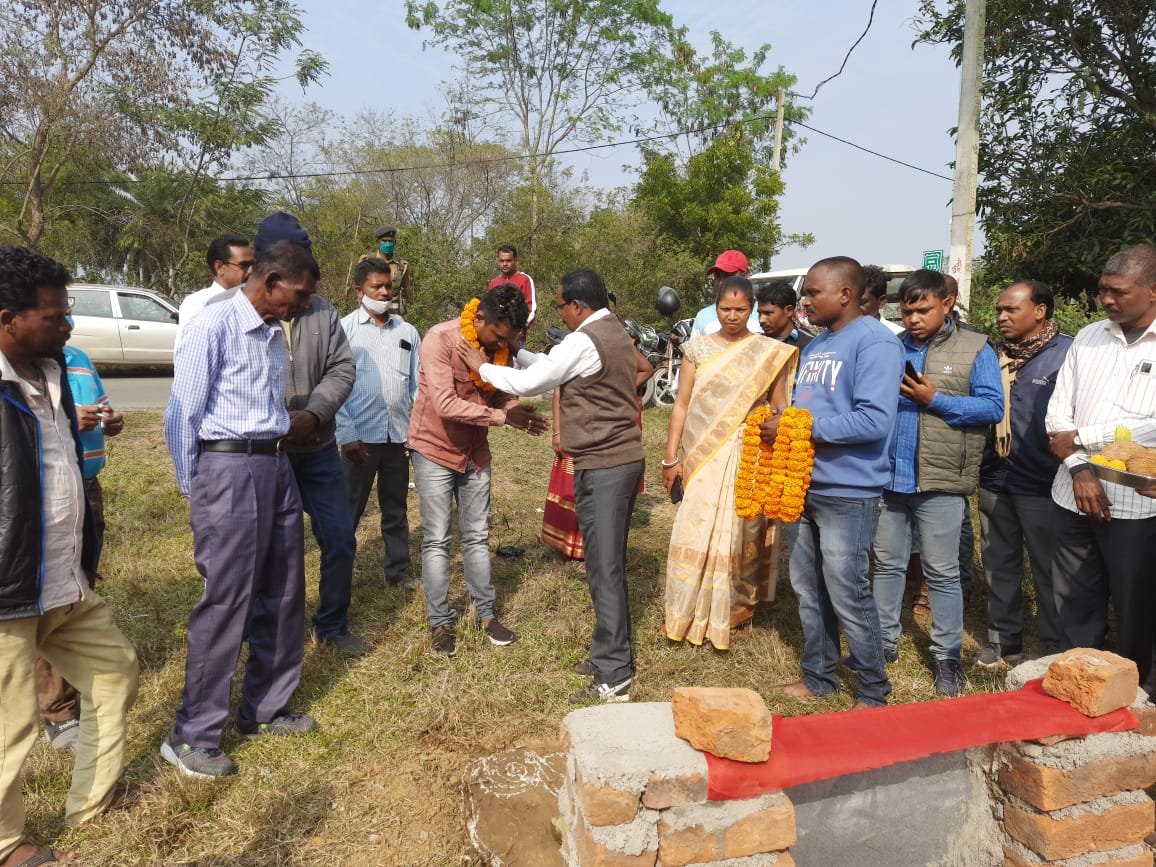 पोटका लोकप्रिय विधायक श्री संजीव सरदार दांमाकी में पुराण समाज के सामुदायिक भवन में चार दिवारी निर्माण कार्य का शिलान्यास किया