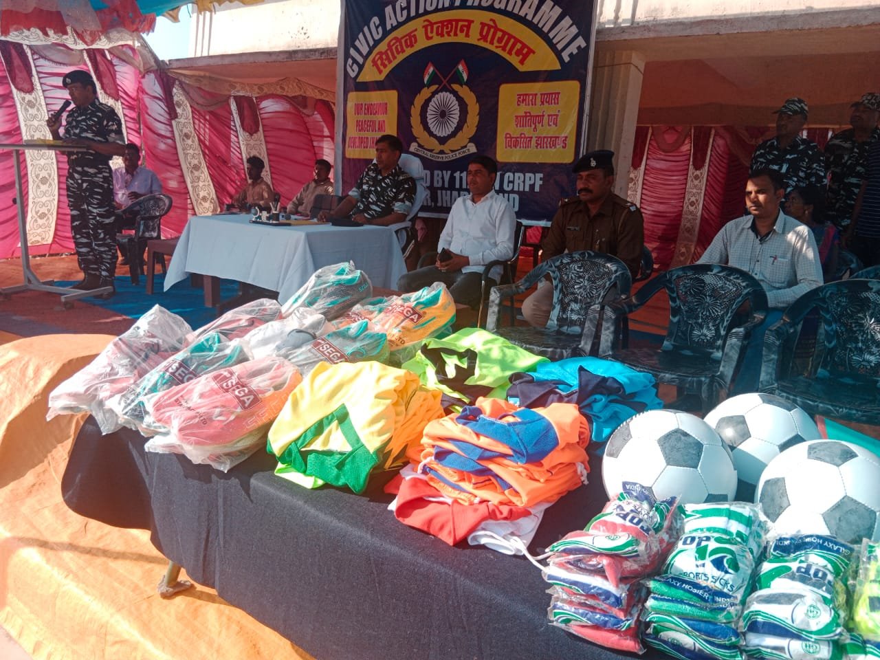 प्रखंण्ड मुख्यालय गारू में शनिवार को सीआरपीएफ 112 बटालियन सिविक एक्शन कार्यक्रम का आयोजन किया। कमांडेंट प्रमोद कुमार साहु, द्वितीय कमान अधिकारी महेश कुमार विश्वकर्मा, एवं बीस सुत्री अध्यक्ष कमरुद्दीन खलीफा नें कार्यक्रम में मुख्य रूप से उपस्थित हुए। गारू +2 विद्यालय के खेल मैदान में विद्यार्थियों के बीच फुटबॉल मैच का मैच भी कराया गया। सीआरपीएफ 112 बटालियन के कमांडेंट प्रमोद कुमार साहू नें विद्यार्थियों एवं अन्य लोगों को सम्बोधित करते हुए बोले कि, इस कार्यक्रम का मुख्य उद्देश्य ग्रामीणों एवं पुलिस के बीच समानता स्थापित करना है। खासकर युवा लोग मुख्य धारा से न भटके, प्रशासन लगातार इसके लिए प्रयासरत है। कार्यक्रम के अंत में खेल सामग्री जैसे फुटबॉल, नेट, जर्सी आदि वितरण किया गया। मौके पर बीस सूत्री अध्यक्ष कमरुद्दीन खलीफा, पवन कुमार कश्यप, विद्यालय के शिक्षक, छात्र – छात्राएं एवं कई गणमान्य लोग उपस्थित थे।