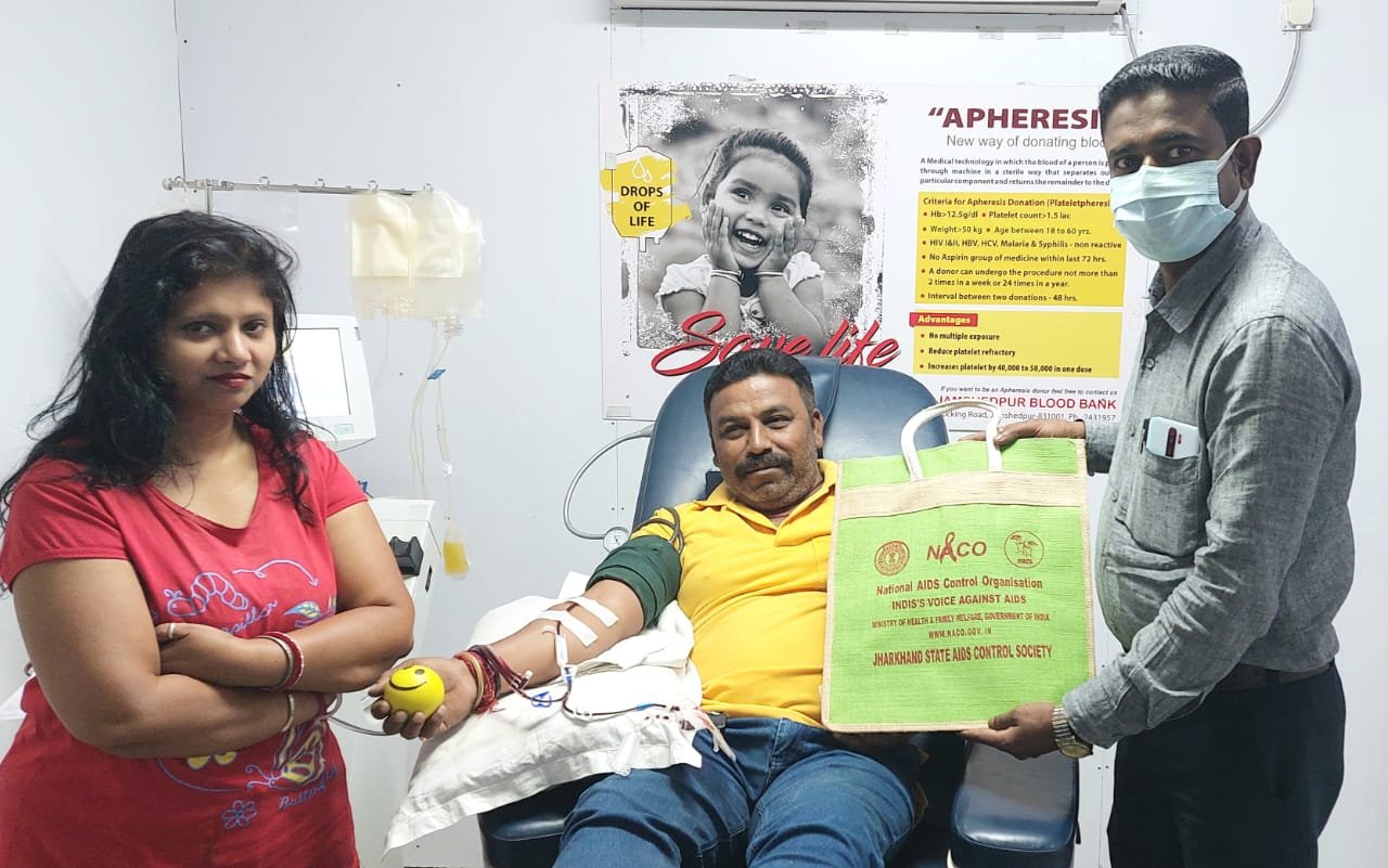 हर रोज जमशेदपुर ब्लड बैंक के एक आह्वान पर, ” प्रतीक संघर्ष फाउंडेशन ” के नियमित रक्तदाता सह योद्धा ” राजन बनर्जी एवं बी.एल.रमेश ” जी दिनांक 29 मार्च 2022, संध्या बेला 8 बजे जमशेदपुर ब्लड बैंक पहुंचकर,जहां ” राजन बनर्जी ” जी ने अपना ” 10 वा सिंगल डोनर प्लेटलेट्स रक्तदान करते हुए 20 बा स्वैच्छिक एवं सुरक्षित रक्तदान ” के आंकड़े को पूर्ण किया. ठीक उसी के साथ साथ एस.आई.एस सिक्योरिटी में कार्य करने वाले योद्धा ” बी.एल. रमेश ” जी ने अपना तीसरा ( 3rd ) सिंगल डोनर प्लेटलेट्स रक्तदान करते हुए स्वैच्छिक एवं सुरक्षित ” 30 बा ” रक्तदान के आंकड़े को पूर्ण किया.और इसी रक्तदान के साथ ” प्रतीक संघर्ष फाउंडेशन ” का सिंगल डोनर प्लेटलेट्स रक्तदान के क्षेत्र में ” 244 बा रक्तदान ” का आंकड़ा भी पूर्ण हो गया.किसी स्वयंसेवी संस्था के द्वारा अभी तक का सिंगल डोनर प्लेटलेट्स रक्तदान के क्षेत्र में सर्वाधिक है.आज इन दोनों योद्धाओं के द्वारा समाज हित में जरूरतमंद लोगों के लिए उनके द्वारा किया गया अतुलनीय कार्य के लिए जमशेदपुर ब्लड बैंक एवं प्रतीक संघर्ष फाउंडेशन की ओर से उन्हें प्रतीक चिन्ह एवं प्रशस्ति पत्र देकर जहां सम्मानित किया गया.वहीं इस अवसर पर जमशेदपुर ब्लड बैंक के जी.एम. संजय चौधरी जी वरिय डॉक्टर एल.बी.सिंह, अनुभवी तकनीशियन अनूप श्रीवास्तव, प्रतीक संघर्ष फाउंडेशन के निर्देशक अरिजीत सरकार एवं विजोन सरकार. उपस्थित रहे