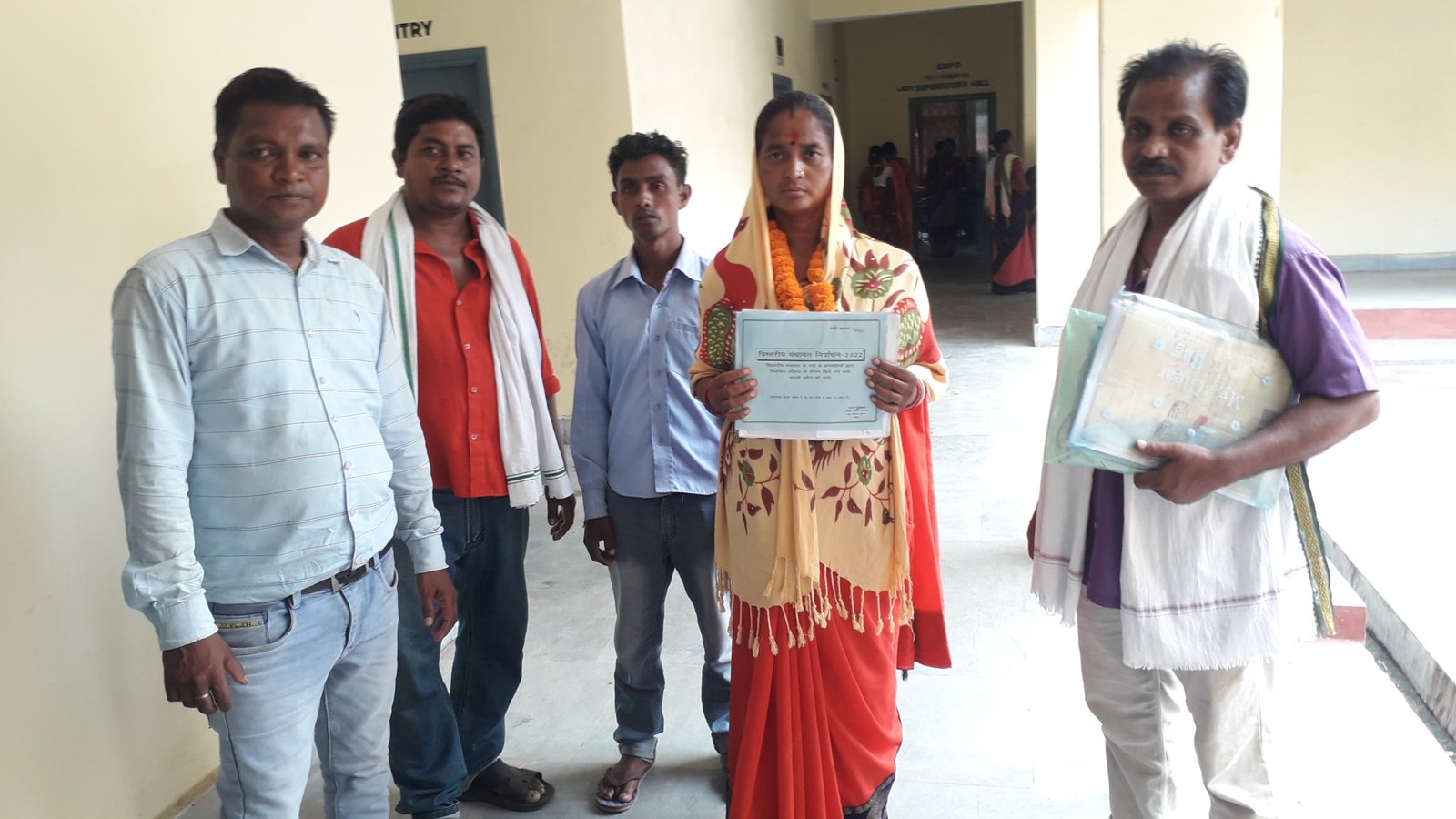 मुखिया उम्मीदवार जयंती सरदार अपने समर्थकों के साथ पोटका प्रखंड कार्यालय पहुंचकर अपना नामांकन पत्र दाखिल की