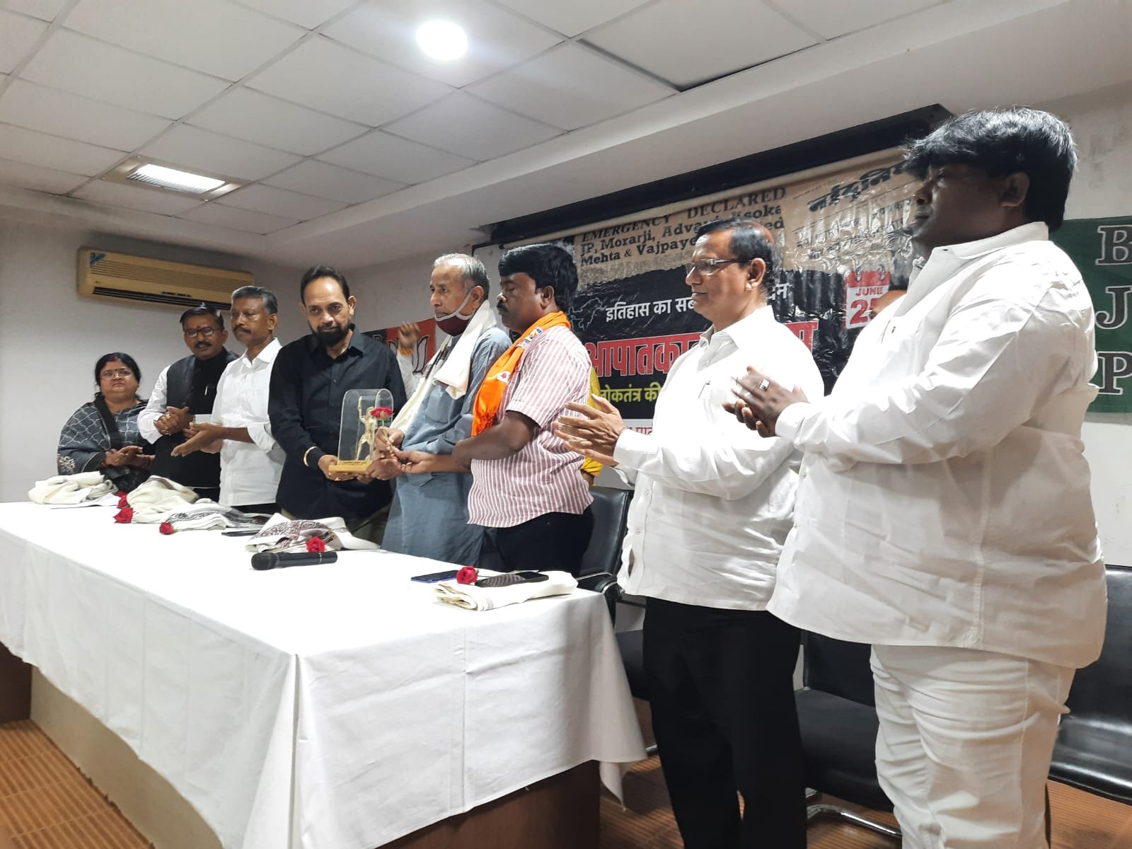 सबसे पहले इमरजेंसी के दौरान जेल गए भाजपा नेता सह आदित्यपुर नगर निगम के महापौर श्री बिनोद श्रीवास्तव और भाजपा के वरिष्ठ नेता श्री बी.एन को मुख्य अतिथि सांसद श्री विद्युत महतो और मंचासिन अतिथियों द्वारा सम्मानित किया गया,