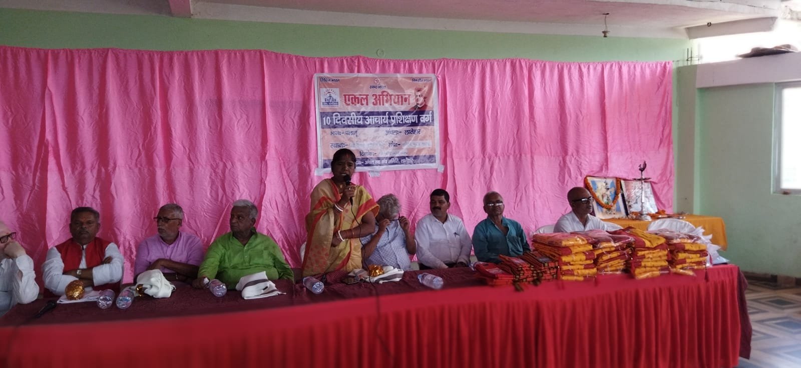 लातेहार वैष्णो दुर्गा मंदिर में 10 दिवसीय अचार्य प्रशिक्षण का आज समापन समारोह हुआ.सभी आचार्य को अंग वस्त्र दे कर के विदाई किया गया .पंचशील योजना को सब को प्रक्षिक्षण दे कर के सभी आचार्यों को दक्ष बनाया गया.अपने गांव मोहल्ला में जाकर के स्वावलंबन स्वास्थ्य प्राकृतिक खेती अध्यात्म स्वरोजगार को अंग भूत होकर के गांव समाज देश को मजबूत कर भारत को सोने की चिड़िया बना दीजिए दिशा में कायॅ करेंगे .यह बात नगर पंचायत अध्यक्ष सीतामनी तिर्की ने दिये.