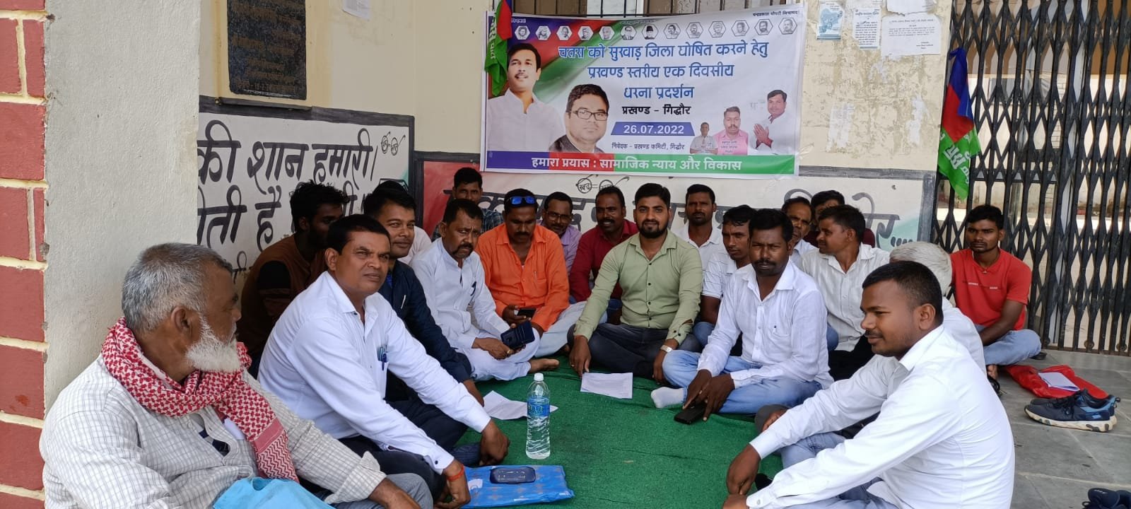 गिद्धौर, आजसू पार्टी कार्यकर्ताओं ने मंगलवार को प्रखंड मुख्यालय में एक दिवसीय धरना एवं गिद्धौर प्रखंड को सुखाड़ घोषित करने को लेकर प्रखंड विकास पदाधिकारी के माध्यम से मुख्यमंत्री के नाम से ज्ञापन सौंपने सोपा गया हैं। इस कारक्रम में जिला के पदाधिकारी, गिद्धौर प्रखंड प्रभारी जागेश्वर दास, जिला प्रवक्ता शिवलाल दांगी , जिला सचिव वैद्यनाथ कुमार दांगी , प्रखंड अध्यक्ष बहादुर दांगी, कार्यकर्ता प्रखंड अध्यक्ष यदुनंदन पांडेय, प्रखंड कोषाध्यक्ष विनोद ठाकुर प्रखंड संगठन सचिव पुरुषोत्तम गुप्ता और प्रखंड के तामाम सम्मानित कार्यकर्ताओं बुद्धिजीवियों शामिल थे