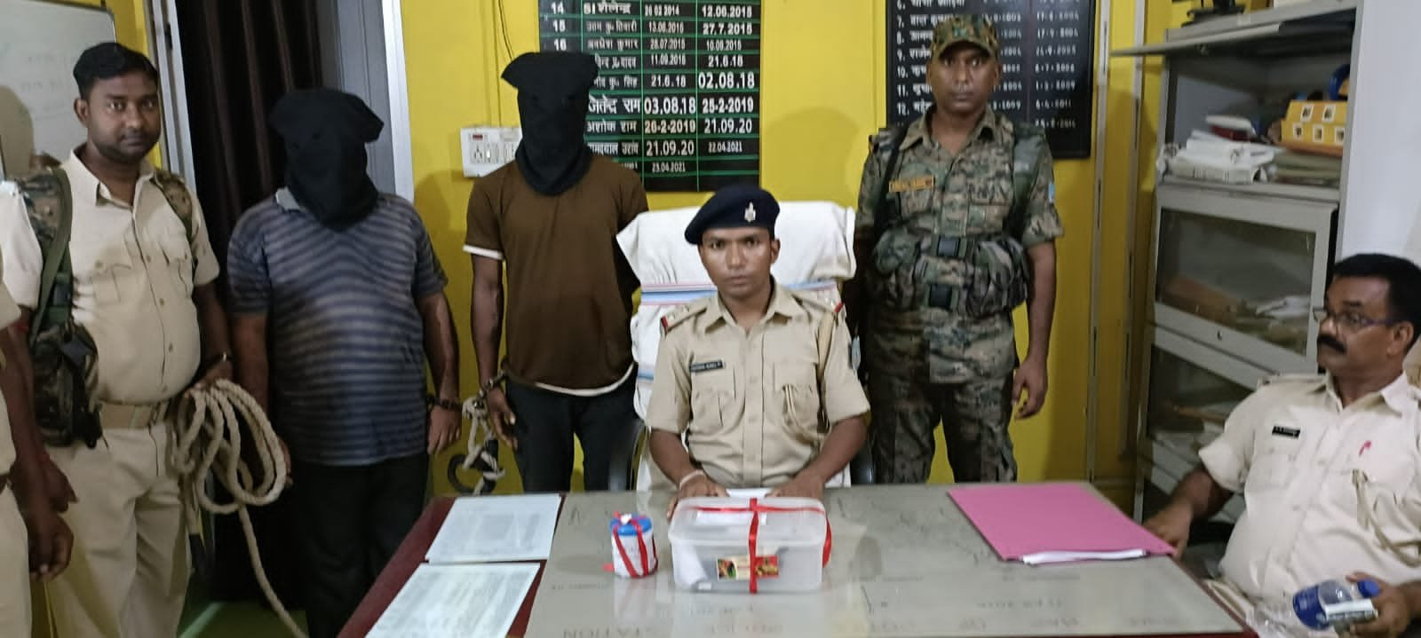 पोटका से हैसल बिल जाने वाला मुख्य पथ पर बुधवार के रात को शीतल लाहा होटल के सामने पोटका पुलिस द्वारा दो व्यक्तियों को एक देसी पिस्तौल एवं चार जिंदा कारतूस के साथ गिरफ्तार कर लिया गया पोटका थाना प्रभारी रविंद्र मुंडा ने कहा कि बुधवार रात को सहनी प्रभु नाथ शर्मा पुलिस बल के साथ गश्ती मैं थे इसी क्रम में दो युवकों ने शीतल लाहा होटल के सामने बाइक खड़ा करके बातचीत कर रही थी अचानक पुलिस को देखकर दोनों युवकों ने भयभीत होकर भागने का प्रयास की तब पुलिस द्वारा दोनों युवकों को दौड़ कर पकड़ लिया गया दोनों युवकों को तलाशी के दौरान पंकज के पास से एक देसी कट्टा ब7,65 एम एम के दो गोली ब सपन के पास से दो जिंदा कारतूस बरामद किए गए आरोपित इनका नाम पंकज भगत कलकापुर ब सपन कुमार महतो सीमोदूरी पश्चिम बंगाल बड़ा बाजार का निवासी है