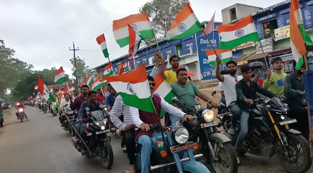 मोटरसाइकिल तिरंगा यात्रा में भारत माता की जय ,वंदे मातरम से पूरा चंदवा मंडल देशभक्ति मय हो गया।