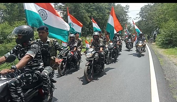 जिसका नेतृत्व सीआरपीएफ के कमांडेंट ऑफिसर भी.पी. त्रिपाठी ने किया। मौके पर भी.पी. त्रिपाठी ने कहा कि हर घर तिरंगा कार्यक्रम के माध्यम से हम लोग गांव गांव जाकर लोगों को जज्बा देश भक्ति और तिरंगा के प्रति जोश को जगाने का प्रयास सीआरपीएफ के जवानों के द्वारा रैली के माध्यम से किया जा रहा है । इस मौके पर कमांडेंट ऑफिसर वेद प्रकाश त्रिपाठी, टवाईसी जेके जोशी, विनोद कुमार कनौजिया, वरीय चिकित्सा पदाधिकारी डॉक्टर रुपेश साहू, उप कमांडेंट एमआर प्रणव समय तक आरोही बटालियन के जवान उपस्थित रहे।