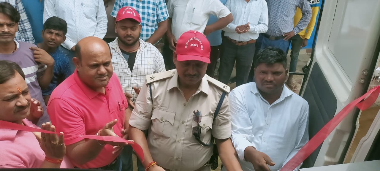 स्वैच्छिक रक्तदान शिविर कार्यक्रम का उद्घाटन पुलिस निरीक्षक सह थाना प्रभारी मदन कुमार शर्मा के द्वारा किया गया।