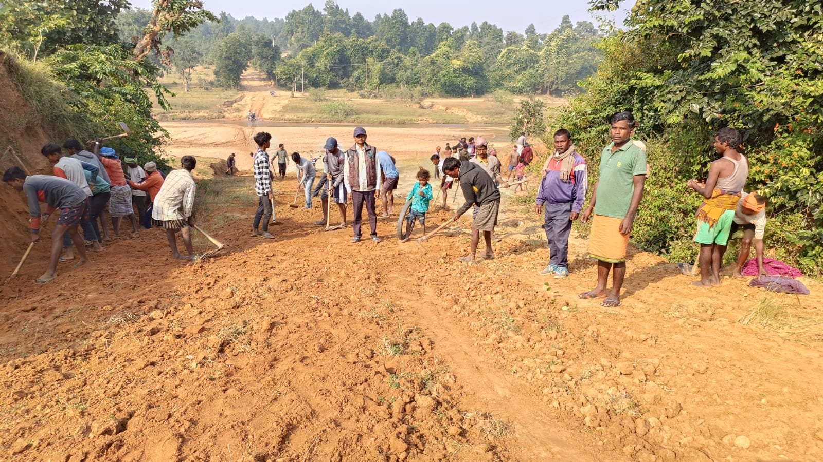 श्रमदान से ग्रामीणों ने सड़क की मरम्मत की अन्य गांव में खुशी की लहर