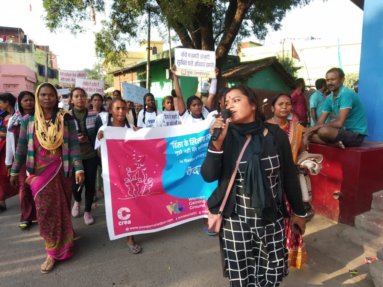 सामाजिक संस्था यूथ यूनिटी फॉर वॉलंटरी एक्शन (युवा) की ओर से 16 दिवसीय अभियान “हिंसा के खिलाफ हम सब की आवाज” के दूसरे दिन और भारतीय संविधान दिवस के उपलक्ष्य पर पोटका प्रखंड के हाता चौक से हल्दीपोखर बाजार तक मुखिया,पंचायत समिति , पंचायत प्रतिनिधि, Women Collective,किशोरियों और महिलाओं द्वारा पैदल रैली की गई। जिसमें 80 प्रतिभागियों ने भाग लिया। जिसका उद्देश्य महिला हिंसा को रोकना, सुरक्षित सड़क, सुरक्षित घर,सुरक्षित बाजार और अपने अधिकारों को सुरक्षित करते हुए समाज में लोगों के नजरिये को बदलना और जागरूकता फैलाना है। इस रैली का संचालन हल्दीपोखर की मुखिया श्रीमती देवी कुमारी भूमिज ने संभालते हुए जल्द/जबरन विवाह को रोकने, हमारा पसंद हमारा अधिकार, विकलांगता का अधिकार ,विकलांगो की सुरक्षा और महिलाओं को ना बांधने का नारा देते हुए पैदल रैली करवाया। महिलाओं के साथ विभिन्न प्रकार की हिंसा कर उनके अधिकारों का हनन किया जा रहा है, इसी विषय के संदर्भ में किशोरियों ने पंचायत भवन में जल्द/जबरन विवाह को रोकने एवं डायन प्रथा जैसी कुरीतियों को खत्म करने के लिए नुक्कड़ नाटक का प्रदर्शन कर लोगों को जागरूक किया। जिसमें युवा के सभी सदस्यों ने सहयोग किया।