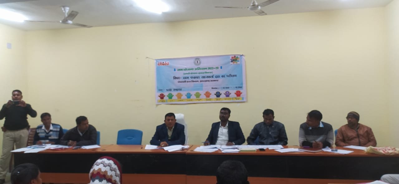 पोटका प्रखंड के वरीय प्रभारी सह एडीएम लॉ एंड ऑर्डर श्री नंद किशोर लाल द्वारा पोटका प्रखंड सभागार में समीक्षा बैठक की गई। बैठक में प्रखंड के सभी पदाधिकारी, सभी मुखिया, पंचायत सचिव एवं रोजगार सेवक उपस्थित रहे जिसमें पंचायतवार विकास योजना की समीक्षा किया गया । एडीएम लॉ एंड ऑर्डर ने कहा कि प्रखंड मे मनरेगा की स्थिति काफी निराशाजनक है और लक्ष्य को प्राप्त करने के लिए मात्र तीन माह का समय रह गया है, इसलिए सभी पंचायत सचिव एवं रोजगार सेवक मनरेगा मे मेहनत करें और अधिक से अधिक लोगों को रोजगार दें । प्रखंड के 23 आंगनबाड़ी केंद्र निर्माण कार्य मे पंचायत क्षेत्र मे 13 आंगनबाड़ी निर्माण का कार्य लंबित है, पंचायत सचिव एवं रोजगार सेवक को सख्त निर्देश दिया गया कि वह 31 दिसंबर को लंबित सभी आंगनबाड़ी केंद्र का निर्माण कार्य पूरा करते हुये हैंडओवर कर दें । लंबित प्रधानमंत्री आवास एवं बाबा साहेब भीमराव अंबेडकर आवास योजना का भी काम लंबित है, जिसे अविलंब पूरा कराये । पंचायत सचिव प्रतिदिन आवास के प्रगति को देखे । पीएमएवाईजी आवास प्लस के जॉब कार्ड मैपिंग का कार्य हल्दीपोखर पूर्वी, हल्दीपोखर पश्चिमी एवं तेंतला पंचायत को छोड़कर सभी पंचायत की स्थिति निराशाजनक है । पोर्टल कभी भी बंद हो सकता है । रोजगार सेवक एवं पंचायत स्वयं सेवक के साथ समन्वय स्थापित कर मैपिंग का कार्य गुरुवार शाम तक पूरा कर लें । बैठक मे मुख्य रूप से बीडीओ श्री निखिल गौरव कमान कच्छप, बीपीओ श्री अभिषेक साहा एवं श्री मंगल महतो, सहायक अभियंता श्री अरबिंद हेंब्रोम, बीसी (पीएमएवाईजी) श्री कानुराम मुर्मू, बीसी (पंचायती राज विभाग) सोनी कुमारी, बीपीएम (जेएसएलपीएस) मंटू मुंडा, मुखिया पानो सरदार, देवी कुमारी भूमिज, अभिषेक सरदार, दुखनीमाई सरदार, सावित्री हांसदा, ईरादेवी सिंह सरदार, बाघराय सोरेन, संगीता सरदार, जीमा सरदार आदि उपस्थित थे ।