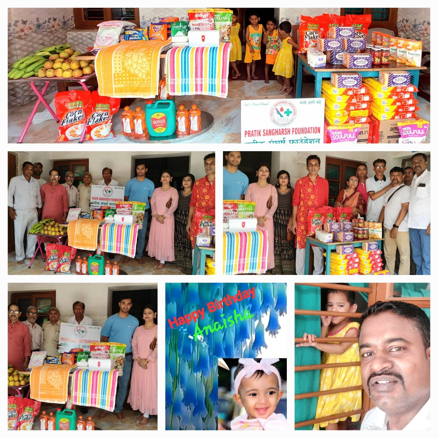 जमशेदपुर के सोनारी निवासी अनिर्बान बोस एवं सोहिता बोस ने एकमात्र छोटी सी नन्ही परी “अनीशा” के पहले जन्मदिन को सिर्फ और सिर्फ मानव सेवा को ही सर्वोपरि रखते हुए समर्पित किया, बाराद्वारी स्थित शिशु भवन में वहां रह रहे छोटे छोटे बच्चे बच्चियों के लिए पौष्टिक आहार के साथ-साथ, कई जरूरत के चीज आज प्रदान किया गया. प्रतीक संघर्ष फाउंडेशन इस मुहिम को एक बड़ा अभियान बनाते हुए संस्था के कई सदस्यों ने इस दिन को “अनीशा” के पहले जन्मदिन के नाम समर्पित करते हुए सभी ने सहयोग प्रदान कर एक विशाल रूप दे दिया. जिसके चलते वहां रह रहे छोटे छोटे बच्चे बच्चियों के लिए अधिक से अधिक मात्रा में मैरीगोल्ड बिस्किट, अमूल स्प्रे पाउडर, बॉर्नविटा, जूनियर हॉरलिक्स, कॉर्नफ्लेक्स, मूसली, चीनी, ब्रेड, जैम, केला, सेव, फ्रूट जूस, बेबी टॉवल, बेबी सोप, फिनाइल, डेटॉल, फर्स्ट एड बॉक्स एवं दो पंखा प्रदान किया गया. पोति के जन्मदिन पर दादा अशेष बोस एवं दादी सुनंदा बोस जी का भी सानिध्य एवं आशीर्वाद मिला. इतने बड़े अभियान को प्रतीक संघर्ष फाउंडेशन के कई सदस्यों ने अपना भरपूर सहयोग प्रदान करते हुए इसे सफल बनाया. जिसमें मुख्य रुप से संस्था के चेयरमैन पुलक कुमार सेनगुप्ता, निर्देशक अरिजीत सरकार, वाइस चेयरमैन खेम प्रकाश, एस चौधरी, डी.पी. दास, आल्पना भट्टाचार्य, शुभेंदु मुखर्जी, तपन चंदा, कमला चंदा, दीपक मित्रा, निखिल मंडल, भास्कर चटर्जी, मनोतोष घोषाल, वासुदेव दास, कमल कुमार घोष, दीप सेन, विजोन सरकार, कुमारेस हाजरा, किशोर साहु एवं उत्तम गोराई. आज वहां रह रहे सभी बच्चे बच्चियों के चेहरे पर खुशियां साफ झलक रहा था. प्रतीक संघर्ष फाउंडेशन के सभी सदस्य एवं साथ ही साथ ” अनीशा ” के माता पिता, दादा दादी सभी गर्व महसूस कर रहे थे.