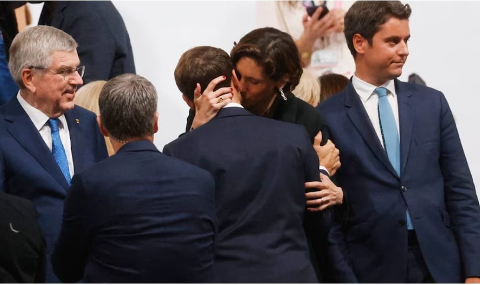 पेरिस:- फ्रांस के राष्ट्रपति इमैनुएल मैक्रों (46) का एक किस इन दिनों पूरे फ्रांस में चर्चा का विषय बना हुआ है. शुक्रवार को पेरिस ओलंपिक 2024 के उद्घाटन समारोह में मैक्रों ने अपनी खेल मंत्री को किस किया है. इस अंतरंग किस के बारे में पूरे शहर में चर्चा का विषय बन गया है. फोटो में 46 साल की एमेली ओडेया-कास्टेरा को मैक्रों की गर्दन को चूमते हुए दिखाया गया है, जबकि उनका एक हाथ उनकी गर्दन के चारों ओर लिपटा हुआ है. उनका दूसरा हाथ फ्रांस के राष्ट्रपति के हाथ को पकड़े हुए है. फोटो में फ्रांस के प्रधानमंत्री गेब्रियल अट्टल भी अपनी नजरें फेरते हुए दिखाई दे रहे हैं.