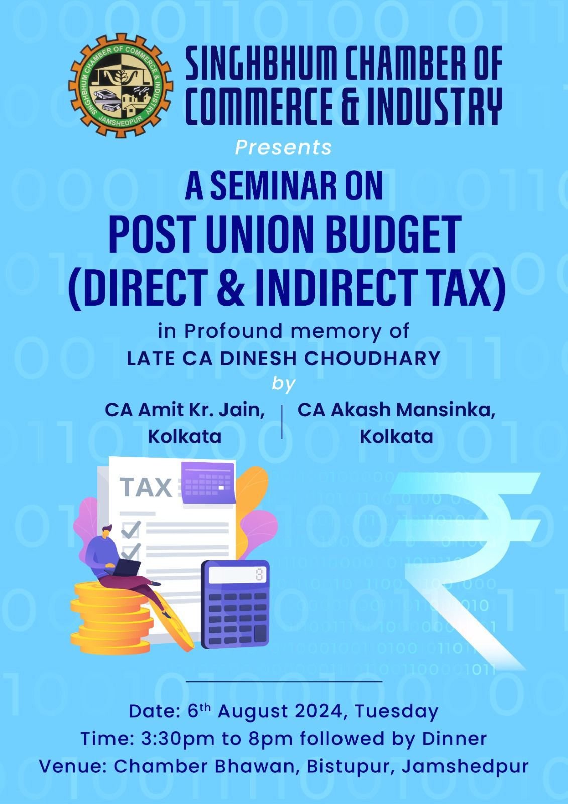 जमशेदपुर: SCCI को यह घोषणा करते हुए खुशी हो रही है कि प्रत्यक्ष और अप्रत्यक्ष कर पर बजट पश्चात सेमिनार आयोजित किया जा रहा है। यह महत्वपूर्ण कार्यक्रम चेम्बर भवन में आयोजित किया जाएगा और नवीनतम बजट प्रभावों पर अमूल्य अंतर्दृष्टि और विश्लेषण प्रदान करेगा।