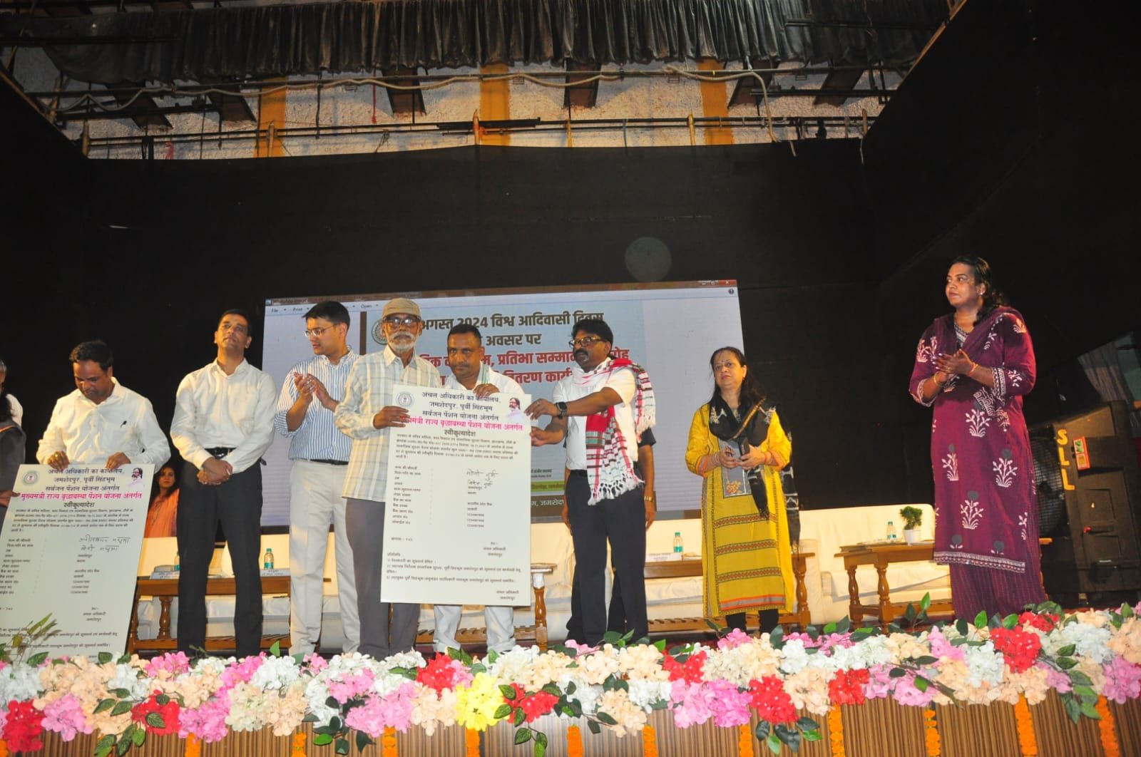 जमशेदपुर। विश्व आदिवासी दिवस के अवसर पर टाउन हॉल, सिदगोड़ा में एक भव्य जिला स्तरीय कार्यक्रम का आयोजन किया गया। इस कार्यक्रम में मुख्य अतिथि के रूप में बन्ना गुप्ता, माननीय मंत्री, स्वास्थ्य, चिकित्सा शिक्षा, परिवार कल्याण, खाद्य आपूर्ति, सार्वजनिक वितरण एवं उपभोक्ता मामले विभाग, झारखंड ने भाग लिया। कार्यक्रम में जिला दण्डाधिकारी सह उपायुक्त अनन्य मित्तल, वरीय पुलिस अधीक्षक किशोर कौशल, पीडी आईटीडीए दीपांकर चौधरी, एएमसी मानगो नगर निगम रंजीत लोहरा, जिला कल्याण पदाधिकारी राजेन्द्र गुप्ता सहित अन्य पदाधिकारी भी उपस्थित रहे।