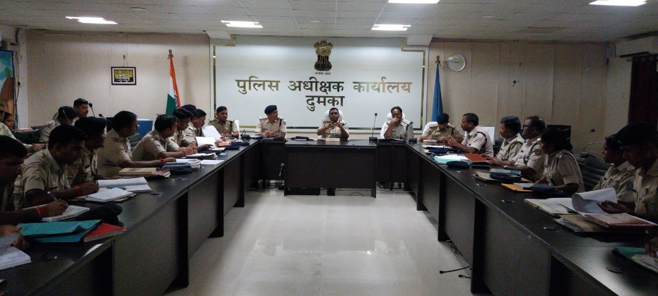 *11 अगस्त 2024 को पुलिस अधीक्षक दुमका श्री पीतांबर सिंह खेरवार ने जिले के सभी अनुमंडल पुलिस पदाधिकारी, पुलिस उपाधीक्षक, परीक्ष्यमान पुलिस उपाधीक्षक, पुलिस निरीक्षक एवं सभी थाना प्रभारियों के साथ अपराध समीक्षा की बैठक हुई ।