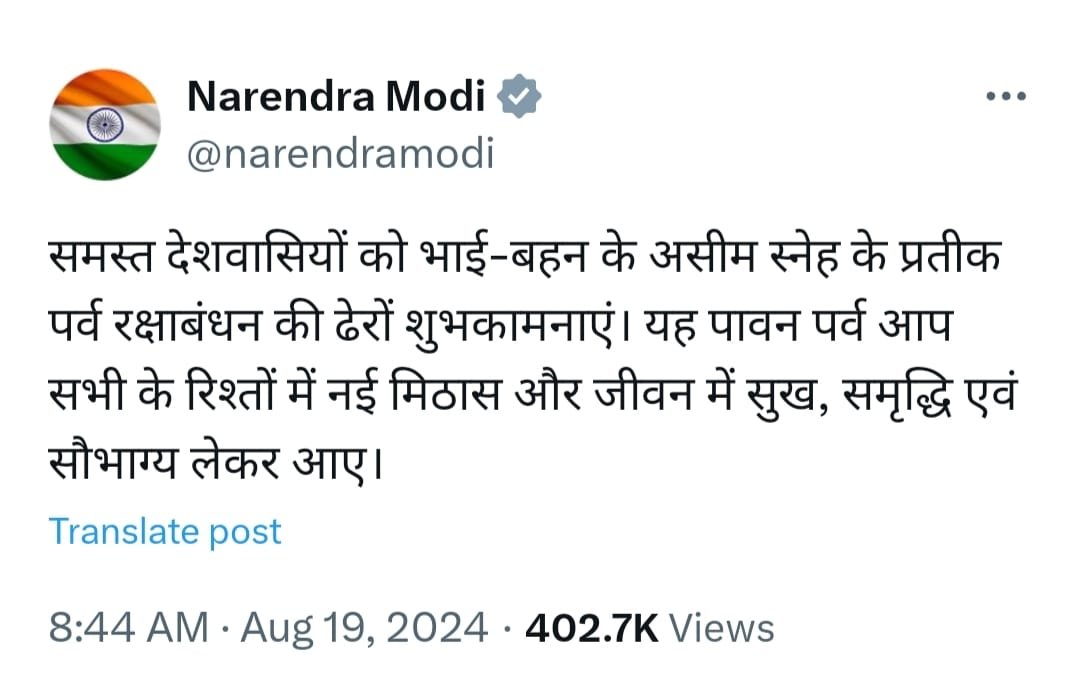 प्रधानमंत्री मोदी ने अपने पोस्ट में लिखा:
