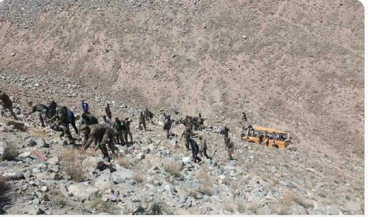 लद्दाख के लेह- : बड़ा हादसा हो गया है. यहां यात्रियों से भरी एक बस सड़क से फिसलकर 200 फीट गहरी खाई में जा गिरी. हादसे में लगभग छह लोगों की मौत हो गई है. जबकि हादसे में 22 लोगों के घायल होने की जानकारी सामने आई है. हादसे के बाद मौके पर चीख पुकार मच गई. हादसा दुरबुक पहुंचने से तीन किलोमीटर पहले हुआ है. बस में लगभग 27 लोग सवार थे.