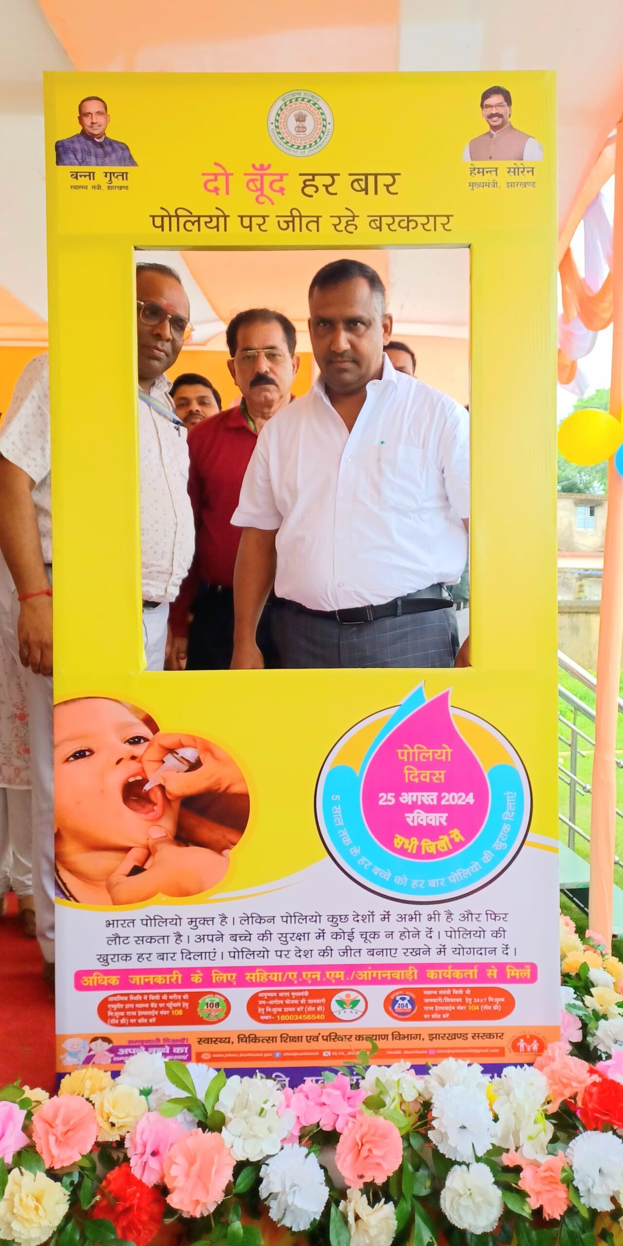 कार्यक्रम के तहत पूर्वी सिंहभूम जिले के सभी बूथों पर आज 0-5 वर्ष के बच्चों को पोलियो की खुराक पिलाई गई। इसके अतिरिक्त, 26 और 27 अगस्त को घर-घर जाकर सहिया, सेविका, और गैर-सरकारी संस्थाओं के सहयोग से बच्चों को पोलियो की खुराक दी जाएगी।