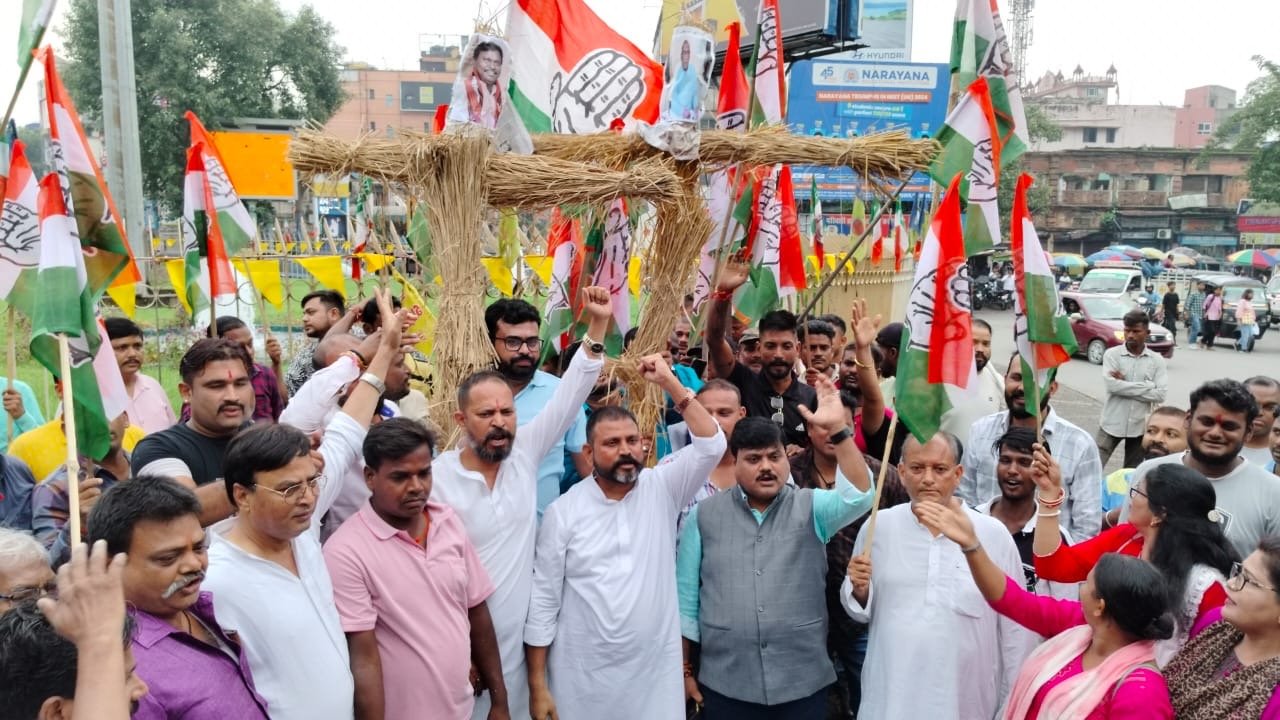 जमशेदपुर: पूर्वी सिंहभूम कांग्रेस के कार्यकारी जिलाध्यक्ष (नगर) धर्मेन्द्र सोनकर के नेतृत्व में सैकड़ों कार्यकर्ताओं ने भुइंयाडीह स्थित कल्याणनगर, छायानगर एवं इंदिरानगर में बसे तकरीबन 150 घरों को तोड़ने के नोटिस के खिलाफ़ विरोध प्रदर्शन करतें हुये साक्ची गोलचक्कर पर जमशेदपुर पूर्वी के निवर्तमान विधायक सरयू राय एवं पूर्व केंद्रीय मंत्री अर्जुन मुंडा का पुतला दहन किया।