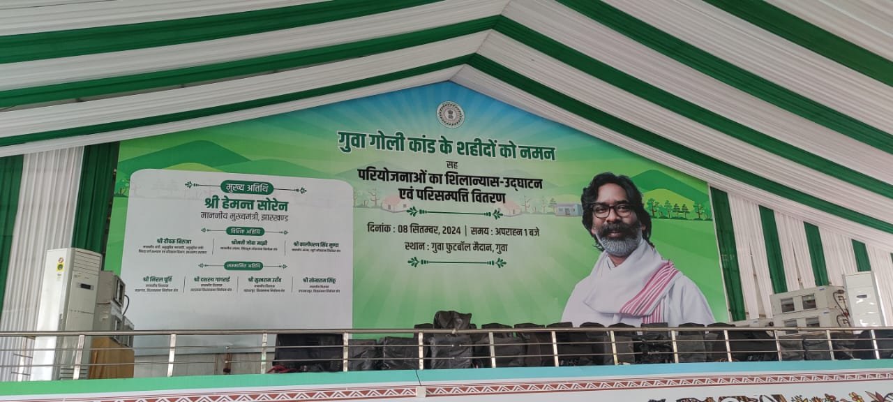 सच्चाई यह है कि पूरा गुवा मुख्यमंत्री हेमन्त सोरेन के आगमण की तैयारी के लिए उनके चित्रों एवं झण्डी की पट्टी से पटा हुआ ।