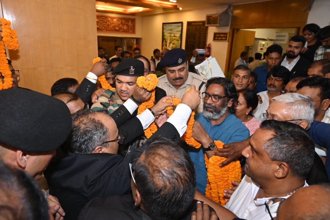 रांची -: जश्न, उमंग और उत्साह. झारखंड मंत्रालय में आज शाम कुछ ऐसा ही नजारा देखने को मिल रहा था। एक तरफ सैकड़ों अधिवक्ता राज्य मंत्रिपरिषद द्वारा अधिवक्ताओं के कल्याण के लिए पेंशन की राशि में वृद्धि, स्वास्थ्य बीमा का लाभ, अधिवक्ता के निधन के बाद उनके आश्रितों को सहायता राशि प्रदान करने तथा नए निबंधित अधिवक्ताओं के स्टाइपेंड राशि में बढ़ोतरी करने समेत लिए गए ऐतिहासिक निर्णयों के लिए मुख्यमंत्री का आभार जताने के लिए मौजूद थे तो दूसरी तरफ जेएसएलपीएस के कंप्यूटर ऑपरेटर्स और परियोजना कर्मी मानदेय में सम्मानजनक वृद्धि तथा समायोजन करने के लिए गए निर्णय को लेकर मुख्यमंत्री हेमन्त सोरेन को बधाई दे रहे थे। मुख्यमंत्री ने सभी का अभिवादन स्वीकार किया।