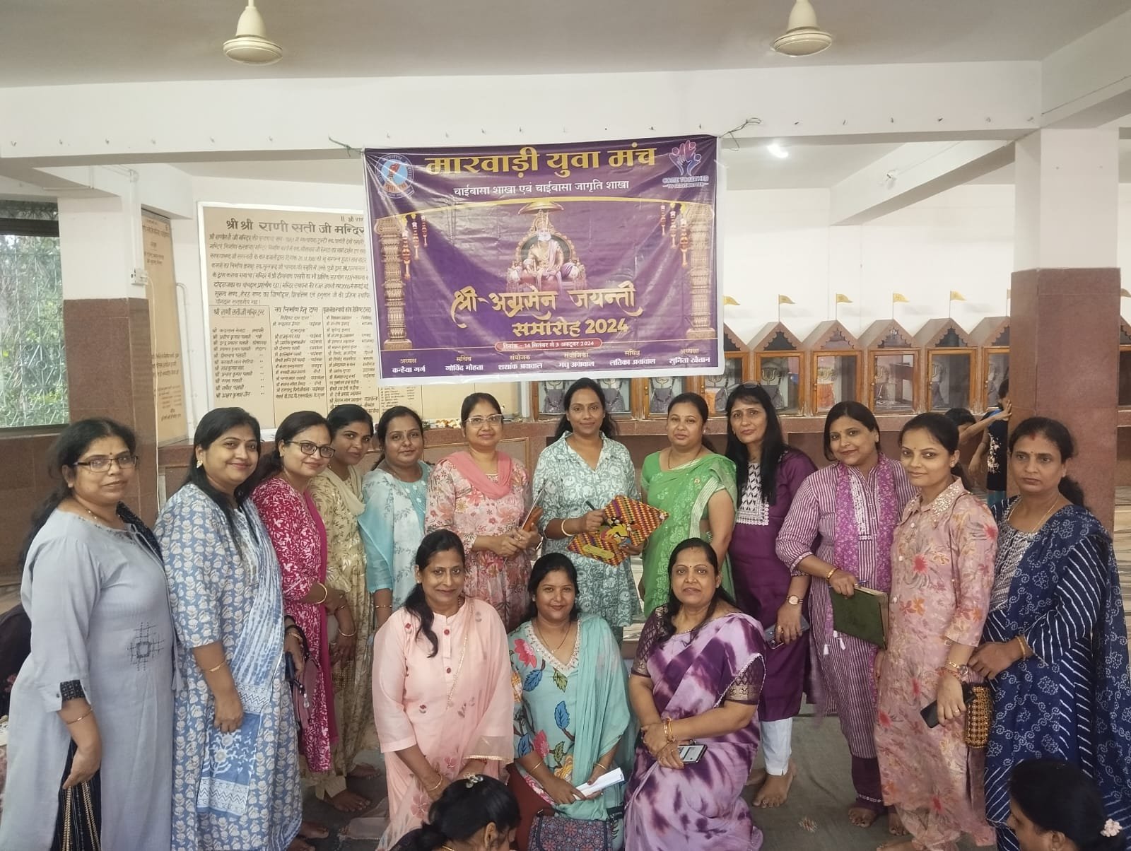 ,पूजा अग्रवाल, स्वीटी दोदराजका ,नीतू टिबरेवाल ,खुशबू दोदराजका ,खुशबू जिंदल ,कुमकुम दोदराजका ,अंजू केडिया ,स्नेहलता अग्रवाल ,प्रीति दोदराजका ,शिखा दोदराजका ,दीपा दोदराजका उपस्थित थे, एवं मारवाड़ी युवा मंच से अध्यक्ष कन्हैया गर्ग और कार्यक्रम संयोजक शशांक अग्रवाल उपस्थित थे ।
