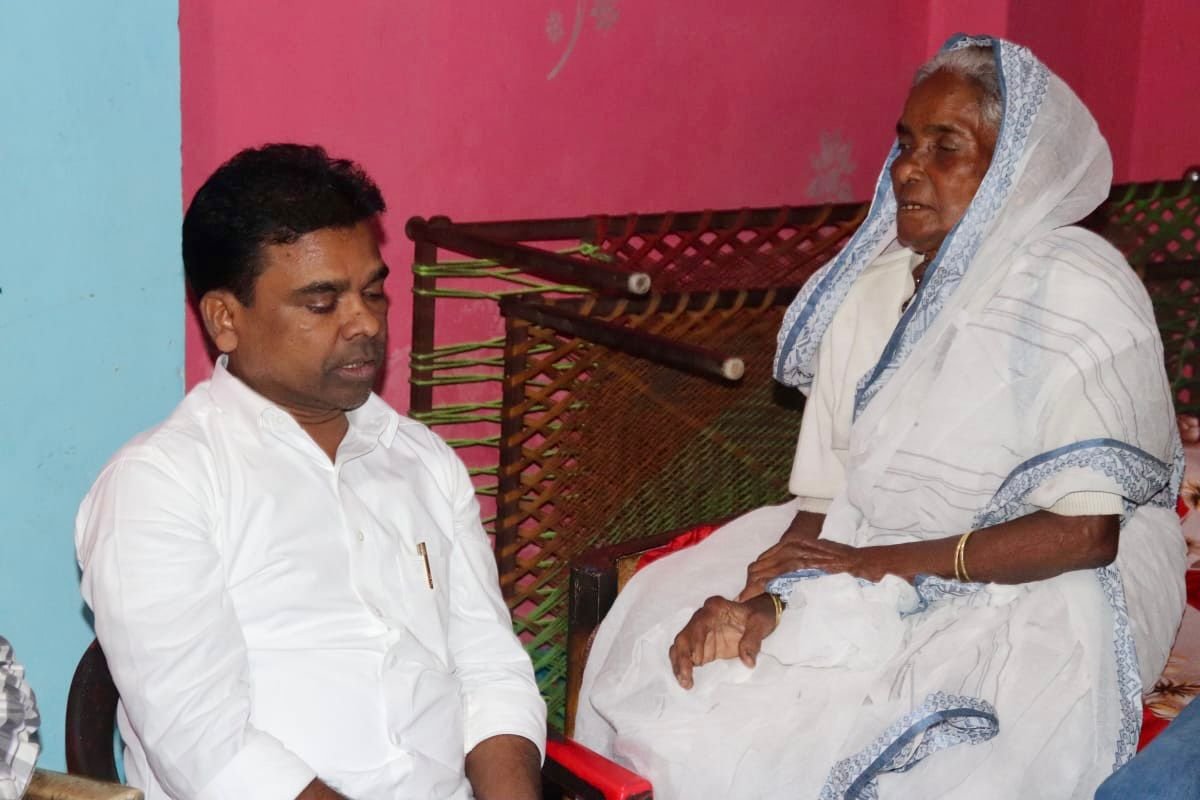 नामांकन के बाद सहिस ने लिया पूर्व सांसद सुनील महतो की मां से आशीर्वाद