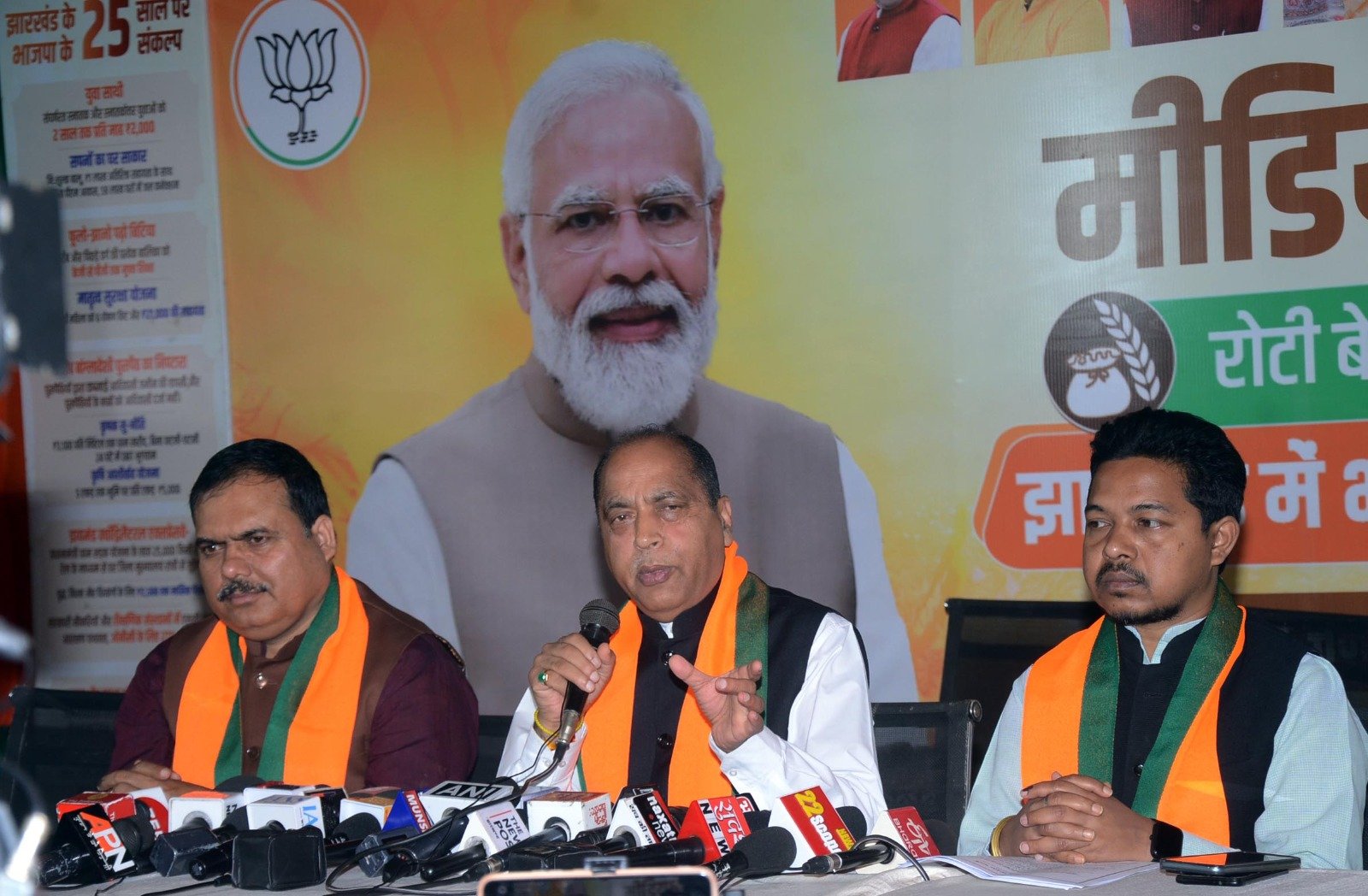 रांची।हिमाचल प्रदेश के पूर्व मुख्यमंत्री और नेता प्रतिपक्ष जयराम ठाकुर ने आज रांची स्थित भाजपा मीडिया सेंटर में आयोजित प्रेस वार्ता में कांग्रेस पर तीखे हमले किए। प्रेस वार्ता के दौरान प्रदेश भाजपा मीडिया प्रभारी शिवपूजन पाठक और सह प्रभारी अशोक बड़ाइक भी उपस्थित रहे।