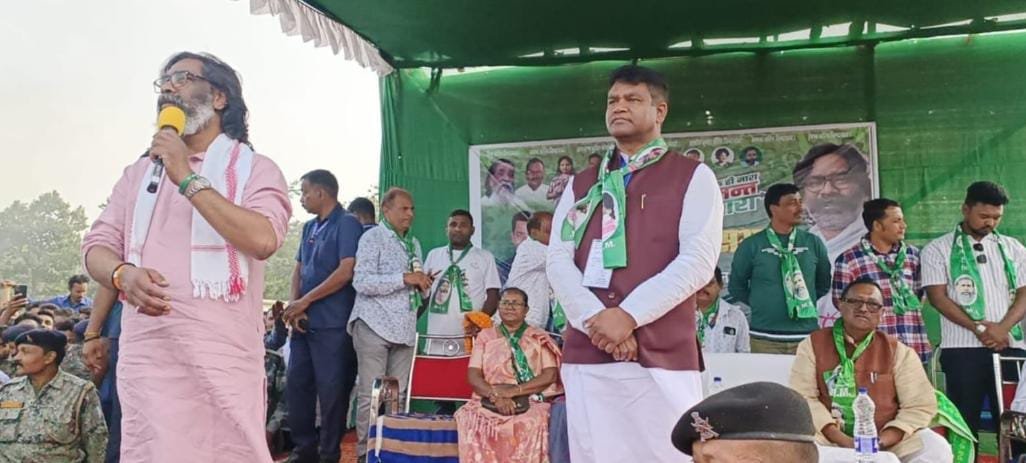झारखंड मुक्ति मोर्चा के कार्यकारी अध्यक्ष एवं पार्टी के स्टार प्रचारक हेमंत सोरेन ने सोमवार को शिकारीपाड़ा विधानसभा क्षेत्र से अपने पार्टी प्रत्याशी आलोक सोरेन के पक्ष में शिकारीपाड़ा कॉलेज मैदान में चुनावी सभा को संबोधित करते हुए कहा कि हम लोगों के समाज में पर्व बराबर आता है, लेकिन चुनाव का महापर्व 5 साल पर आता है। आलोक सोरेन शिकारीपाड़ा विधानसभा क्षेत्र की जनता का आंख कान नाक है इसे विजई बनाने का कार्य करें| एनडीए पर हमला बोलते हुए उन्होंने कहा कि भाजपा नेताओ की बिना पानी की मछली जैसी हालत हो गयी है| मेरे विकास कार्य से घबराकर डबल इंजन की सरकार एक माह पूर्व चुनाव करा रही है। मेरी सरकार महिलाओं को सम्मान दे रही है तथा 5 साल के अंदर प्रत्येक खाते में ₹100000 देगी| वर्तमान समय में मंईयां सम्मान योजना के तहत प्रत्येक मां बहनों के खाते में₹1000 दिया जा रहा है अगले माह से ढाई हजार रुपया दिया जाएगा। झारखंड मुक्ति मोर्चा ने अपने प्रदेश के लोगों की गरीबी बहुत ही नजदीक से देखी है| मैंने बिजली बिल माफ कर दिया। मेरी सरकार ऐसी व्यवस्था करेगी कि महिला सशक्त हो जाए| बाजार में हड़िया नहीं बेचना पड़े। सभा को दुमका सांसद नलिन सोरेन के साथ जिला परिषद अध्यक्ष जोयस बेसरा व पार्टी प्रत्याशी आलोक सोरेन ने भी संबोधित किया| मंच का संचालन प्रखंड अध्यक्ष चुंडा हेंब्रम ने किया। सभा के दौरान बुद्ध राय हंसदा की घर वापसी हुई | वे पांच वर्ष पूर्व झारखंड मुक्ति मोर्चा को छोड़कर भारतीय जनता पार्टी में चले गए थे| उन्होंने आज मुख्यमंत्री के समक्ष पुनः घर वापसी करते हुए झारखंड मुक्ति मोर्चा की सदस्यता ग्रहण की।