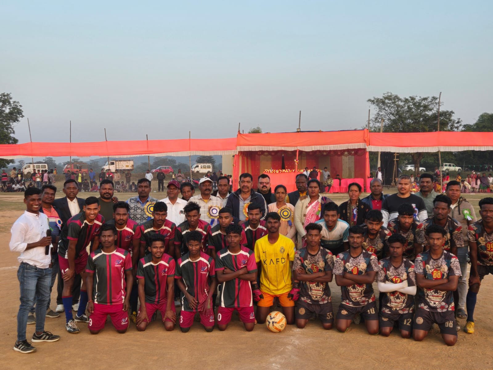 मझगांव: तांतनगर प्रखंड खास पोखरिया यूनाइटेड क्लब के॰सी॰बासा की ओर से आयोजित फुटबॉल प्रतियोगिता में मुख्य अतिथि मंझगांव विधानसभा के विधायक निरल पुरती उपस्थित हुए। इस मौके पर खिलाड़ियों को संबोधित करते हुए विधायक निरल पूर्ति ने कहा कि सरकार की जनकल्याणकारी योजना का लाभ सभी लाभुकों को पहुंचा जा रहा है। मुख्यमंत्री हेमंत सोरेन शपथ ग्रहण के बाद राज्य के विकास के लिए बहुत तेजी से कम कर रहे हैं । जिससे विकास की किरण राज्य के अंतिम व्यक्ति तक पहुंच सके। आप लोगों ने जिस प्रकार सरकार के प्रति समर्थन दिखाए इसके लिए हम सभी का धन्यवाद करते हैं। हमारी सरकार कृत संकल्प है कि सभी वर्ग को उनका हक और अधिकार मिले। इस पर तेजी से काम किया जा रहा है। युवा, छात्र , बुजुर्ग , महिला, बच्चे, किसान , मजदूर, सरकारी कर्मी समेत जितने भी अलग-अलग वर्ग राज्य में निवास करते हैं उन सभी के विकास के लिए हेमंत सोरेन लगातार काम कर रहे हैं। युवाओं ने आज फाइनल में बहुत अच्छा खेल का प्रदर्शन किया। युवाओं के लिए झारखंड सरकार कई योजना लेकर आई है। आप खेल के क्षेत्र में आगे बढ़ाना है , आपको सरकार हर प्रकार का मदद देने के लिए तैयार है। आप अच्छा खेल का प्रदर्शन करेंगे तो जिला, राज्य और राष्ट्र स्तर पर झारखंड सरकार आपके विकास के लिए सभी प्रकार की सुविधा देने को तैयार है। ग्रामीण क्षेत्र के प्रतिभा को निकालने के लिए हेमंत सोरेन कई प्रतियोगिता लेकर आए , जिससे ग्रामीण क्षेत्र की प्रतिभा आगे बढ़ सके। युवाओं को खेल के साथ-साथ प्रोत्साहन राशि भी प्रदान किया जाता है। जिससे वह अपने खेल पर ध्यान दे सके। यही नहीं खेल कोटा से नौकरी में भी स्थान दिया जा रहा है। इसलिए आप मन लगाकर खेलें, जहां भी जरूरत होगी हम आपके साथ हैं। हर प्रकार के मदद देने के लिए तैयार है। इस दौरान फाइनल में बैड मंकी और अश्विनी एफ सी टीम के बीच भिड़ंत हुई, जिसमें पेनल्टी शूटआउट में अश्विनी फसी की टीम 1–0 से विजय रहे। मौजूद अतिथियों ने विजेता और विजेता खिलाड़ियों को पुरस्कार देकर सम्मानित किया। इस मौके पर विशिष्ट अतिथि जिला परिषद सदस्य जवाहर बोयपाई, प्रमुख चांदमनी सिरका, खाशपोखरिया पंचायत मुखिया सरिता बानरा, पंचायत समिति सदस्य प्रमिला गोप,उप मुखिया सुभाष चन्द्र आल्डा, ग्रामीण मुंडा सुधीर पुरती बीस सूत्री कार्यक्रम समिति सदस्य सुखलाल सरदार, हरिचरण गोप,देव कुमार गोप,देव कुमार कुमार बांदा, श्री हरि गोप, भुवनेश्वर गोप,वार्ड सदस्य बुधराम कारोवा,क्लब के साथी उपस्थित थे।