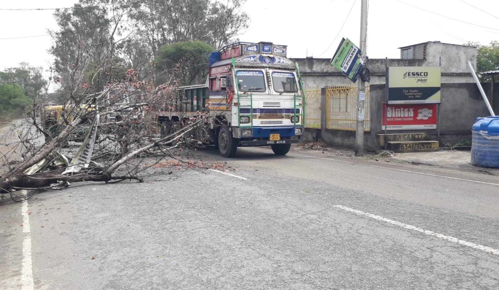हाता से ओड़िशा N H 220 मार्ग पर हल्दीपोखर रेलवे स्टेशन के आसपास हल्दी पोखर के और, तेज आंधी तूफान के करण आज सुबह एक पेड़ सड़क पर गिरने से सड़क पर चलने वाले लोगों का आवागमन में हो रहा दिक्कत। गिरे पेड़ का कहना है कि 12 घंटे से लोग सिर्फ मुझे देख रहे हैं और अपने को बचाकर आगे निकलते जा रहे हैं। इन लोगों को पता नहीं कि मैं किसी भी समय इस जगह मेरे कारण बड़ी दुर्घटना हो सकती है वहीं घटना को आमंत्रण देता है वहीं नेशनल हाईवे होने के कारण हजारों की संख्या में छोटे बड़े वाहनों का आना-जाना हो रहा है वहीं स्थानीय लोगों द्वारा पंचायत सचिव को घटना की सूचना दी गई मगर पेड़ को हटाने के लिए पहल नहीं किया गया, जिसके कारण बीच सड़क पर पेड़ गिरे हुए अवस्था में हंस रहा है।