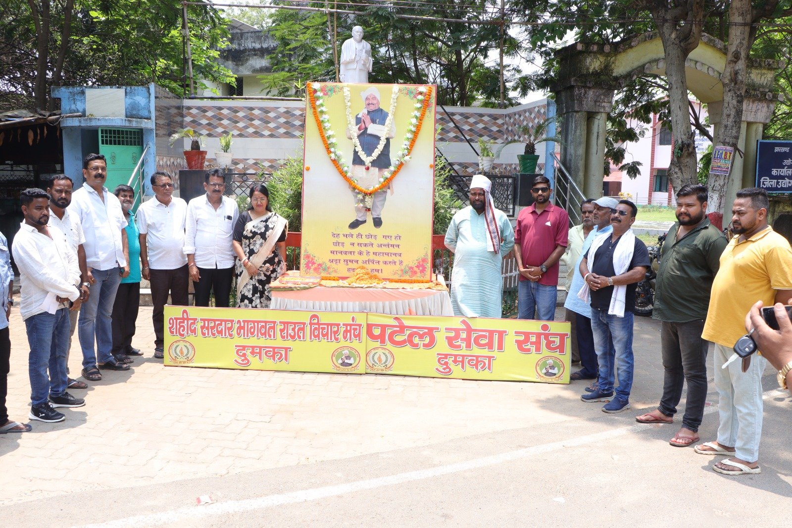 शनिवार को शहीद सरदार भागवत राउत जी की 9वीं पुण्यतिथी शहीद सरदार भागवत राउत विचार मंच एवं पटेल सेवा संघ, दुमका के संयुक्त तत्वावधान में सर्वप्रथम गायत्री मंदिर प्रांगण भागवत नगर,महुवा डंगाल तत्पश्चात सरदार वल्लभभाई पटेल पटेल चौक दुमका में श्रद्धासुमन अर्पण का कार्यक्रम आयोजित किया गया । कार्यक्रम की अध्यक्षता शहीद सरदार भागवत राउत विचार मंच, दुमका संदीप कुमार जय बमबम ने किया ।श्रद्धांजलि सभा में स्व० भागवत राउत की धर्मपत्नी- सह -जिला परिषद सदस्य चिंता देवी, पूर्व नगर परिषद अध्यक्ष अमिता रक्षित,अशोक कुमार राउत (अध्यक्ष पटेल सेवा संघ दुमका), राधे श्याम वर्मा(अध्यक्ष सिविल सोसायटी दुमका), उपाध्यक्ष प्रेम केशरी,राजेश राउत उपाध्यक्ष पटेल सेवा संघ-सह-अध्यक्ष जय माता दी सेवा समिति, प्रोफेसर विनय प्रसाद सिंह,विजय राउत, जगदेव राउत, बिनोद राउत, विजय दास, पंतगिरी,पिंकू मंडल, रवि मंडल,बलराम शाह, योग शिक्षक संतोष गोस्वामी, पंकज राउत, महेश मंडल, महेंद्र साह, राजेश यादव, अशोक राउत, रोहित तिवारी,अकाल साहा, अभीषेक साहा,बालमुकुंद राउत, कुलदीप महतो, राजेश राउत, भूतनाथ मिस्त्री,रामू रजक,राहुल राउत,रजनीकांत राउत,अनुज राउत, रविकांत राउत, कुन्दन कुमार,ऋषभ सिंह, ,रितेश गुप्ता, प्रीत कुमार राउत, ई०अजित दास, ई अभिषेक झा,दिव्यांशु सुमन, रोहित यादव, सुभाष राउत,धीरज पांडे,छोटू मल्लाह, प्रदीप पाल, दीपक कुमार, अभिजीत साह, शशि कुमार, मनोज साह,राधिका कुमारी,अवनी भागवत,अक्षत कुमार राउत सहित दर्जनों बच्चे एवं स्व०भागवत राउत के चाहने वाले उपस्थित होकर श्रद्धासुमन अर्पित किया। पटेल सेवा संघ दुमका के अध्यक्ष अशोक कुमार राउत, सिविल सोसायटी दुमका के उपाध्यक्ष प्रेम केशरी, अमिता रक्षित आदि ने मौके पर शहीद सरदार भागवत राउत जी के जीवन वृत्त पर प्रकाश डाला और सबों ने एक स्वर में कहा कि जिस प्रकार से भागवत राउत जी गरीब असहाय लोगों के मदद के लिए हमेशा तत्पर रहते थे उसी प्रकार समाज के अंतिम पंक्ति में खड़े लोगों को सहायता करें यही सच्ची श्रद्धांजलि उनके प्रति होगी।धन्यवाद ज्ञापन पटेल सेवा संघ के सचिव संदीप कुमार जय बमबम ने दिया।