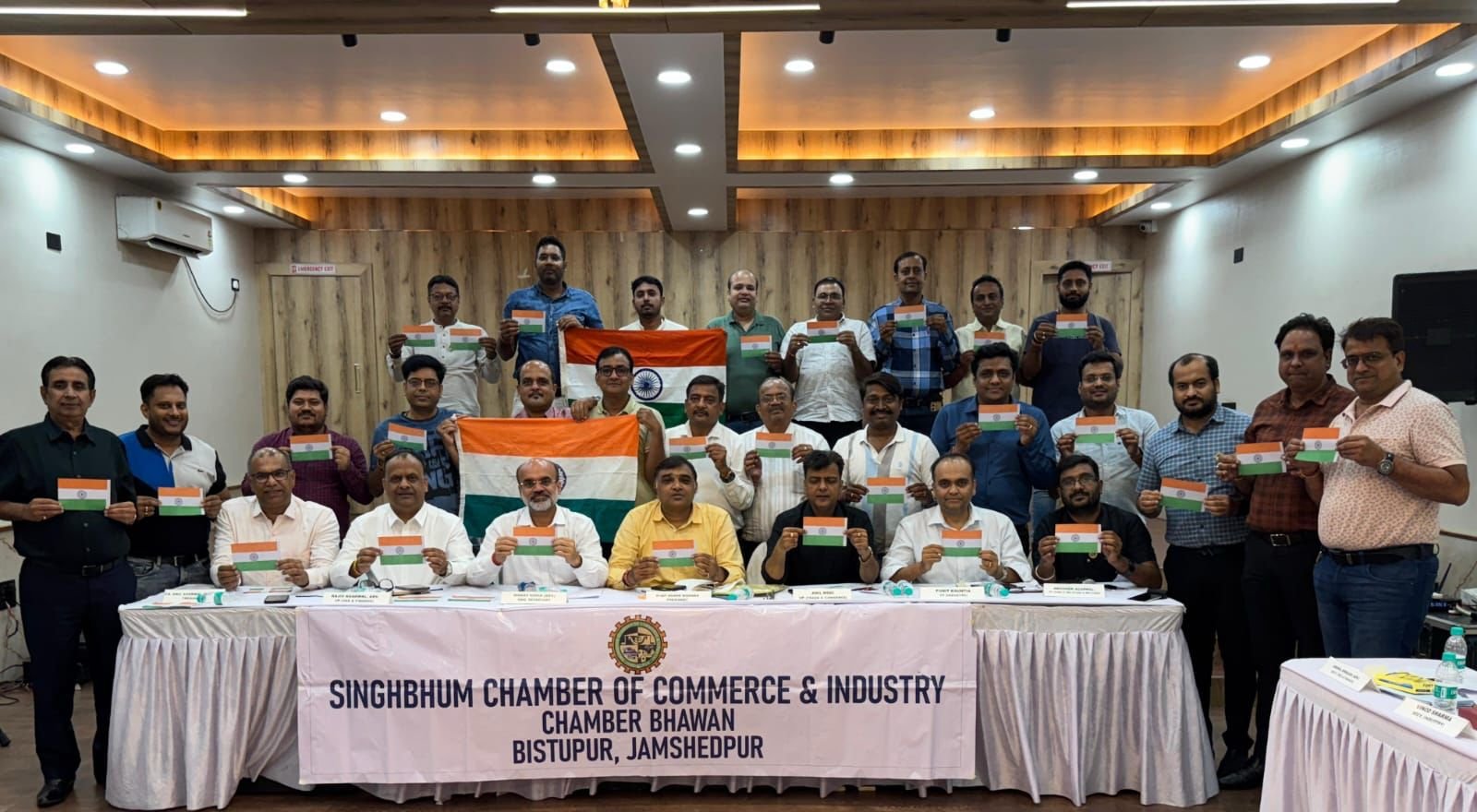 सिंहभूम चैम्बर के द्वारा चैम्बर भवन में बैठक आयोजित कर पहलगाम में आतंकवादियों द्वारा निहत्थे 26 भारतीय नागरिकों की हत्या करने के विरूद्ध ‘ऑपरेशन सिंदूर’ के तहत भारतीय सेना और सरकार के द्वारा जवाबी कार्रवाई करते हुये पाकिस्तान एवं पाकिस्तान के कब्जे वाले कश्मीर घाटी में आतंकवादी ठिकानों पर मिसाईल एवं ड्रोन हमला कर आतंवादियों को दंडित किये जाने का व्यापारियों ने हाथों में तिरंगा लेकर एक स्वर में समर्थन किया।