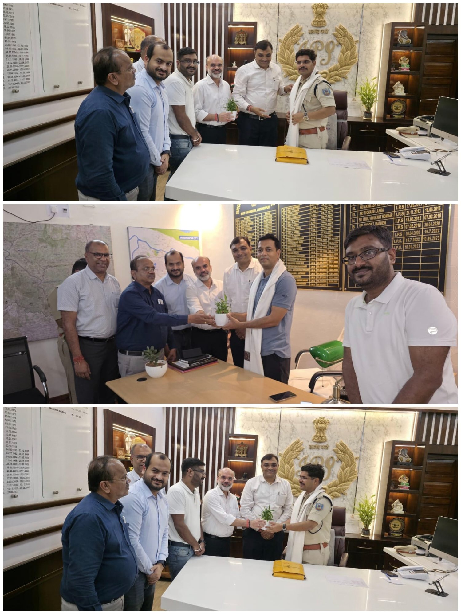 इसके अलावा, प्रतिनिधिमंडल ने जमशेदपुर के नए एसएसपी श्री पीयूष पांडेय (भा•पु•से) से भी मुलाकात की। इस दौरान कई महत्वपूर्ण मुद्दों पर चर्चा हुई, जिनमें शहर की सुरक्षा, यातायात प्रबंधन और व्यापारिक समुदाय की चिंताएं शामिल थीं। प्रतिनिधिमंडल का नेतृत्व कर रहे सिंहभूम चैम्बर ऑफ कॉमर्स एंड इंडस्ट्री के अध्यक्ष विजय आनंद मुनका ने नए एसएसपी को शहर के विकास और सुरक्षा के लिए पूर्ण सहयोग का आश्वासन दिया। एसएसपी श्री पीयूष पांडेय ने भी व्यापारिक समुदाय के साथ मिलकर काम करने की इच्छा व्यक्त की और आश्वस्त किया कि वे शहर की सुरक्षा और विकास के लिए हर संभव प्रयास करेंगे।
