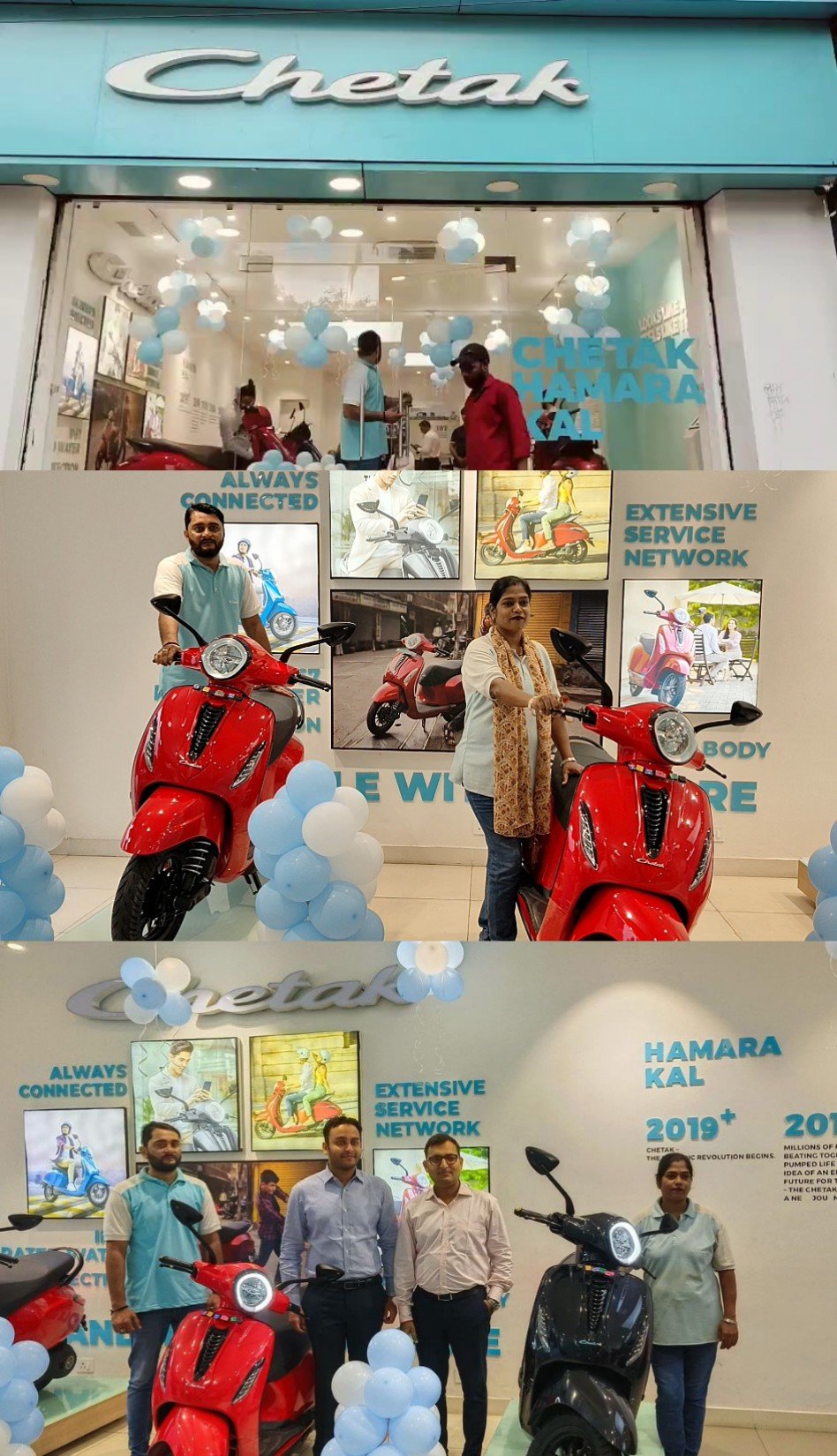 जमशेदपुर में न्यूवेव चेतक के बिष्टुपुर स्थित शोरूम में मंगलवार को बजाज चेतक के नए 3001 मॉडल को लॉन्च किया गया