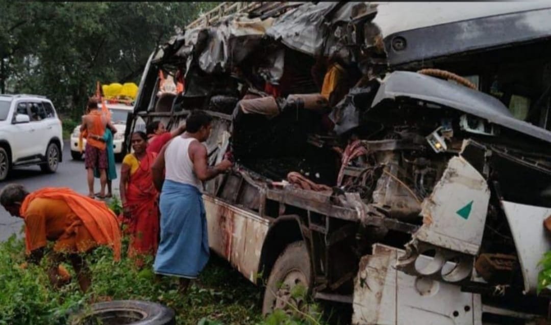 देवघर।श्रावणी मेला में बाबा बैद्यनाथ धाम के दर्शन के लिए आ रहे श्रद्धालुओं के बीच मंगलवार सुबह उस समय मातम पसर गया जब गोड्डा-देवघर मुख्य मार्ग पर जमुनिया मोड़ के पास एक भीषण सड़क हादसे में 18 कांवरियों की दर्दनाक मौत हो गई। यह दर्दनाक हादसा सुबह लगभग 5:30 बजे उस समय हुआ, जब कांवरियों से भरी एक बस सामने से आ रहे ट्रक से तेज रफ्तार में टकरा गई।