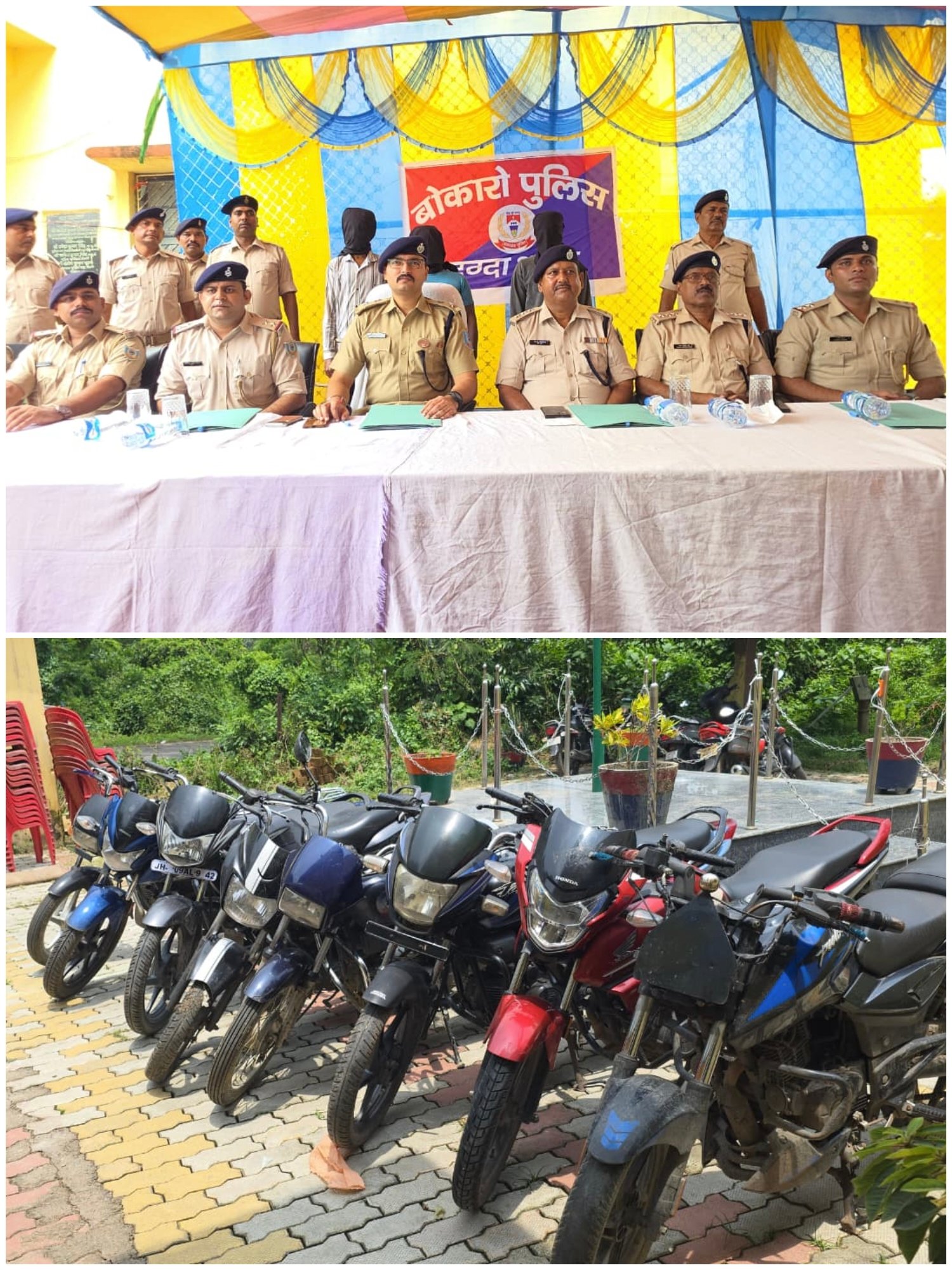 बोकारो:- बोकारो एसपी हरविंदर सिंह ने रविवार को दुगदा थाना में प्रेस वार्ता में बाईक चोर गिरोह का खुलासा किया। एसपी ने बताया कि जिले के विभिन्न थाना क्षेत्र में लगातार हो रही बाइक चोरी की रोकथाम के लिए जिले के थाना क्षेत्रों में सघन वाहन जांच अभियान चलाया जा रहा था। अनुमंडल पुलिस पदाधिकारी वाशिष्ठ नारायण सिंह, प्रोन्नत डीएसपी सह पुलिस निरीक्षक नवल किशोर सिंह के नेतृत्व में एक टीम गठित किया गया। गठित टीम द्वारा गत 16 अगस्त 2025 को रटारी के महावीर चौक के पास वाहन जांच अभियान चलाया जा रहा था। इसी दौरान एक ग्रे रंग के बाइक पर दो व्यक्ति चंद्रपुरा की ओर से महावीर चौक की तरफ आ रहें थे। पुलिस की जांच अभियान को देखकर वापस चंद्रपुरा की ओर भागने लगे। पुलिस बल द्वारा पीछा करते हुए मोटरसाइकिल सवार दोनों व्यक्ति को पकड़ा गया। पकड़े गये युवक ने पुछ ताछ के क्रम में बताया कि मोटर साइकिल चोरी की है जिसे बेचने के लिए धनबाद जा रहे है। साथ ही बताया कि पकड़े गये अभियुक्त जिले के दुगदा, चंद्रपुरा, बोकारो झरिया, बोकारो सीटी एवं धनबाद जिले से कई बाइक चोरी की घटना का अंजाम दे चुके हैं. तथा उनके निशान देही पर अन्य सात बाइक चंद्रपुरा, दुगदा, धनबाद से बरामद किया गया है। इस संबंध में दुगदा थाना कांड संख्या 46/2025 धारा 317, 338/3 (5) बीएन एस 2023 के तहत मामला दर्ज कर तेनुघाट जेल भेज दिया गया। पकड़े गये अभियुक्त आकाश यादव उम्र 27 वर्ष स्टेशन रोड़ चंद्रपुरा, सागर कुमार तुरी आगरडीह थाना दुगदा , एवं सुमित कुमार उम्र 20 वर्ष डुमरा ( राजा बाड़ी) बाघमारा शामिल है एवं दो अन्य नाबालिक शामिल है। पकड़े गये अपराधी आकाश यादव के विरुद्ध चंद्रपुरा थाना में पूर्व से पांच अलग-अलग अपराधिक मामला दर्ज है। एसपी ने बताया कि बाइक चोर गिरोह के सरगना आकाश यादव नाबालिग बच्चों को आन लाइन गेमिंग एवं मादक पदार्थों का लत लगाकर बाईक चोरी करने में साथ जोड़ता था। छापामारी दल में पुलिस उपाधीक्षक सह पुलिस निरीक्षक नवल किशोर सिंह, दुगदा थाना प्रभारी मनीष कुमार, चंद्रपुरा थाना प्रभारी अजय कुमार सिंह, बोकारो झरिया ओपी प्रभारी श्रीनीवास सिंह पुलिस अवर निरीक्षक लक्ष्मण चौधरी, नरेश मरांडी, स.अ.नि. मुनेन्द्र उरांव, हवलदार शशि भूषण, हवलदार अश्शेवर प्रसाद यादव एवं आरक्षी विजय कुमार शर्मा, सुधीर कुमार, अमन कुमार पांडेय, राजु महतो, रोहित कुमार साह, मुस्ताक अंसारी आदि शामिल थे।
