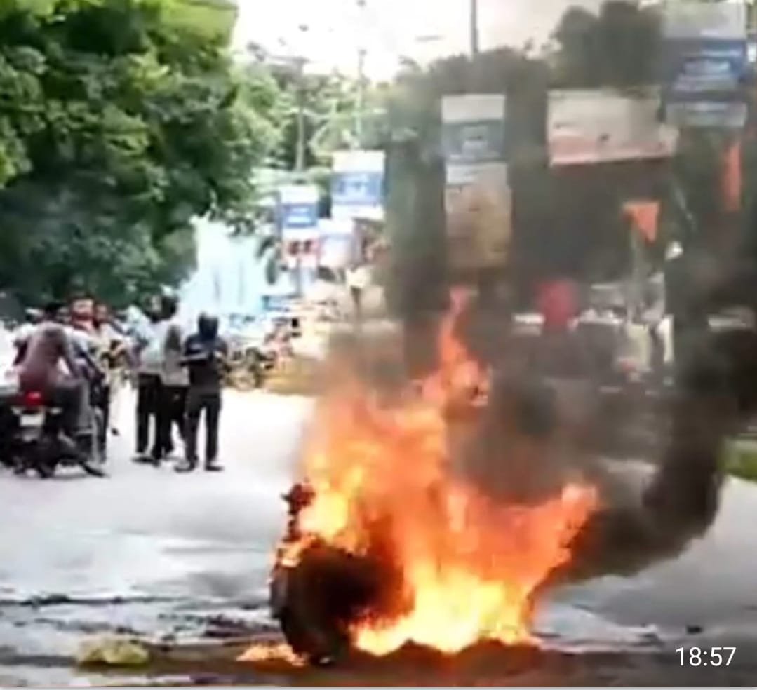 जमशेदपुर में चलती स्कूटी में लगी आग, बाल-बाल बचे लोग