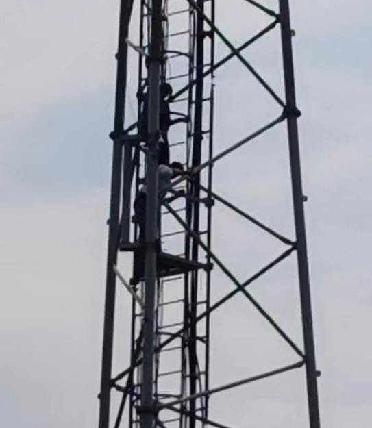 टावर में चढ़ी महिला, मची अफरातफरी, पति ने सुरक्षित उतारा