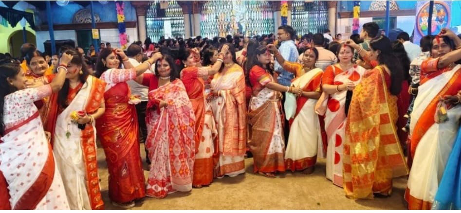रंग-बिरंगी साड़ियों में सजी महिलाएं नृत्य, गीत और पारंपरिक मिठाइयों के साथ इस अवसर का आनंद लेती रहीं। पूरे राज्य में भक्ति और उल्लास का ऐसा माहौल बना, जिसने त्योहार के समापन को यादगार बना दिया। सिंदूर खेला के जरिए महिलाओं ने एक बार फिर यह संदेश दिया कि परंपरा में निहित शक्ति, आस्था और एकता आज भी समाज को जोड़ने का काम कर रही है।