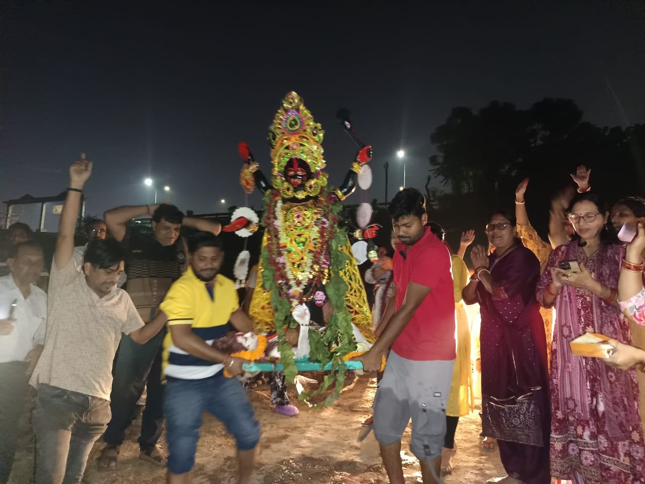 आज सुबह काली प्रतिमा का विसर्जन कदमा के सती घाट में विधि-विधान से किया गया। विसर्जन जुलूस में भक्तों ने “जय मां काली” और “महाकाली की जय” के नारों के साथ भक्ति और उत्साह का माहौल बना दिया।