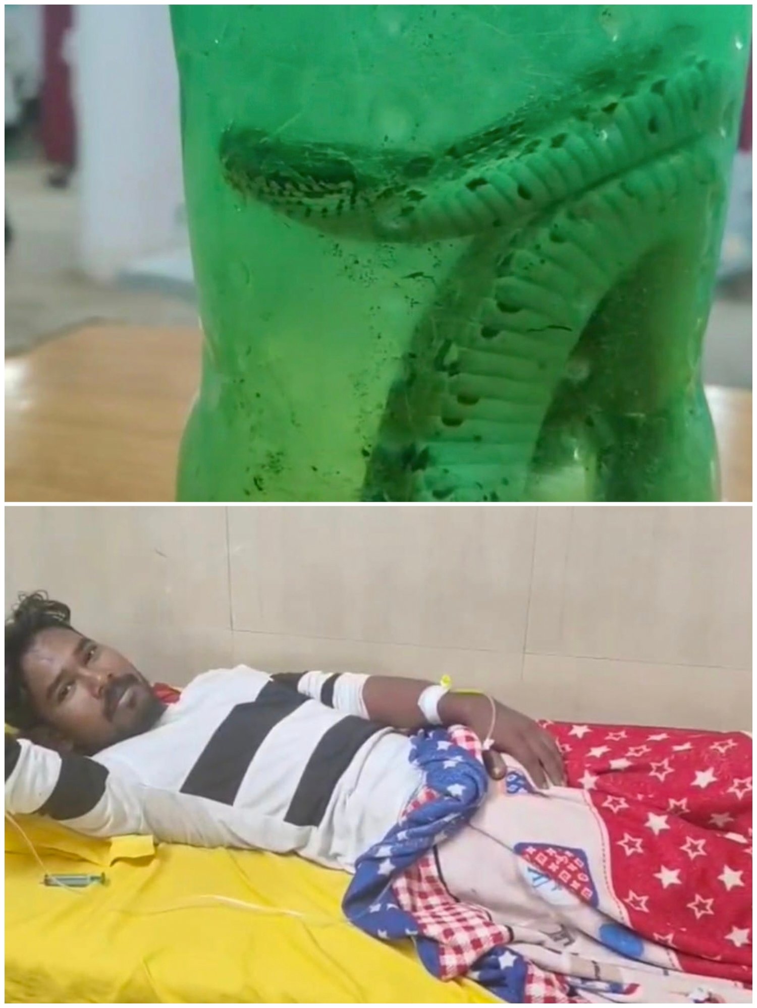 जहरीले सांप ने युवक को डंसा, सांप को बोतल में बंद कर घायल पहुंच गया अस्पताल, अस्पताल में मची अफरातफरी