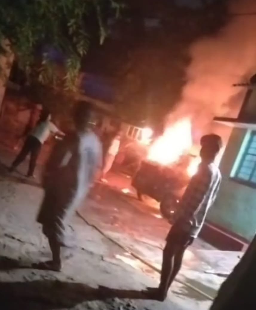 जमशेदपुर। सिदगोड़ा थाना क्षेत्र के भुइयांडीह कानू भट्ठा इलाके में सोमवार तड़के झारखंड मुक्ति मोर्चा (जेएमएम) के नेता सोनू सिंह की चार पहिया वाहन में अचानक आग लगने से इलाके में हड़कंप मच गया। घटना सुबह लगभग चार बजे की बताई जा रही है। उस समय सोनू सिंह अपने घर में परिवार के साथ सो रहे थे, जब उन्हें सूचना मिली कि उनके घर के बाहर खड़ी कार में आग लग गई है।