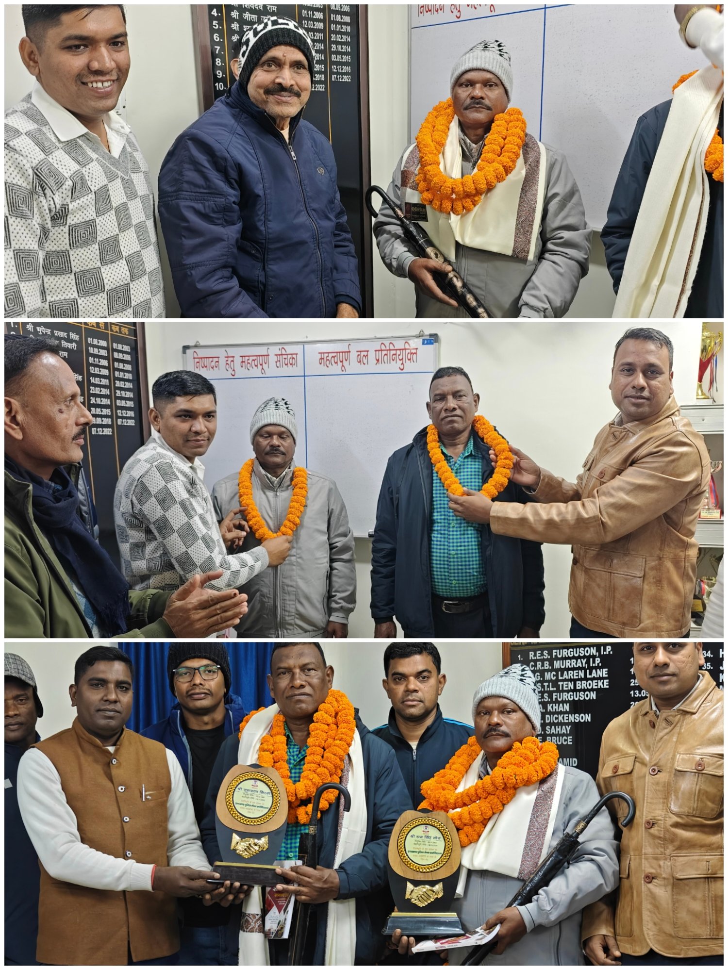 चाईबासा: पश्चिमी सिंहभूम जिला स्थित चाईबासा पुलिस केंद्र में पुलिस मेंस एसोसिएशन, शाखा की ओर से मंगलवार को आयोजित विदाई सह सम्मान समारोह में सेवानिवृत्त हो रहे हवलदार गुरुचरण सिरका और हवलदार राय सिंह सोय को पुलिस परिवार की ओर से सम्मानित किया गया। इस अवसर पर पुलिस केंद्र चाईबासा के परिचारी संतोष कुमार, प्रतीक कुमार, सुनील किस्पोट्टा सहित सभी शाखाओं के पदाधिकारी, पुलिस मेंस एसोसिएशन के प्रतिनिधि और पुलिसकर्मी उपस्थित थे।
